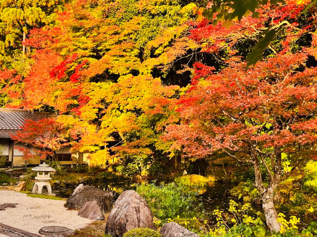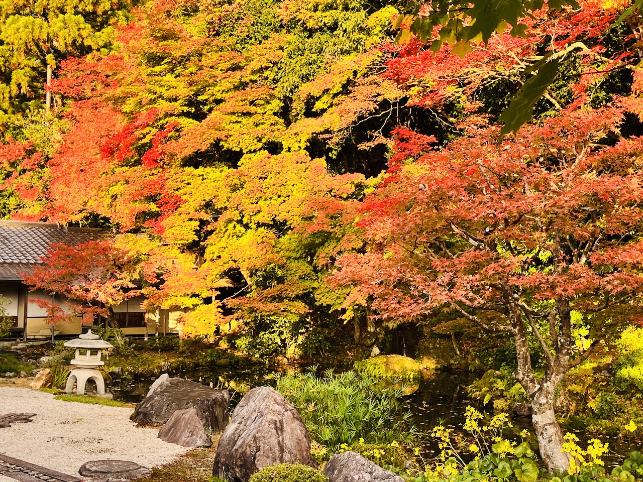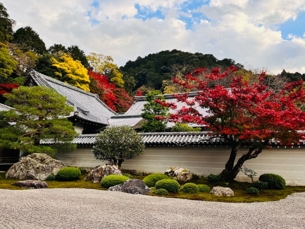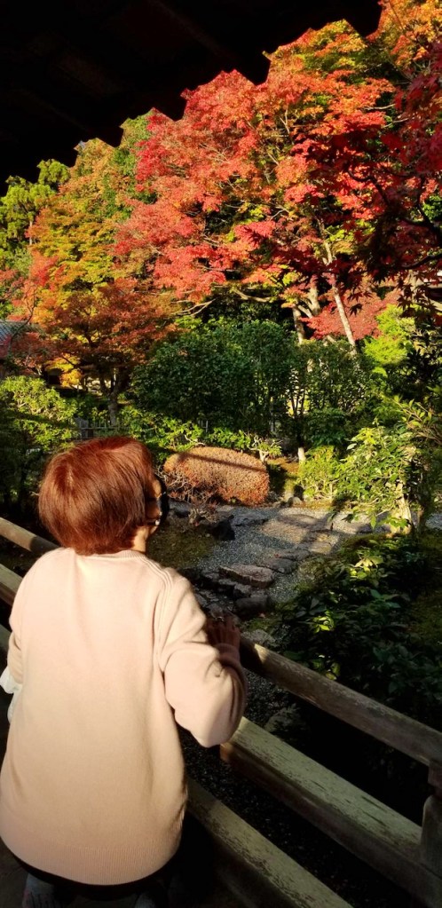 2022/11/162022/12/22 南禅寺の庭 Le jardin de Nanzen-Ji 大方丈の前の庭は小堀遠州作と伝えられているそうです。 ここはもちろん素晴らしかったけれども、奥のほうへ進んで行くと、山ぎわの紅葉が素晴らしくて、回廊を歩きながら庭の眺めを堪能しました。ちょうど曇っていた空に、ぱっと陽の光が照り映えて、鮮やかな色がなんともいえない美しさでした。 うっとり。 午後4時ごろになって外へ出ると、さすがにコートなしでは肌寒く感じました。タクシーでホテルへ戻り、一休みしてから、夕食に出かけます。 帰り道、山門のまわりの紅葉がきれいです。 Share this: Click to share on Facebook (Opens in new window) Facebook Click to share on X (Opens in new window) X Click to share on Tumblr (Opens in new window) Tumblr Click to share on Pinterest (Opens in new window) Pinterest Click to email a link to a friend (Opens in new window) Email More Click to print (Opens in new window) Print Like Loading...