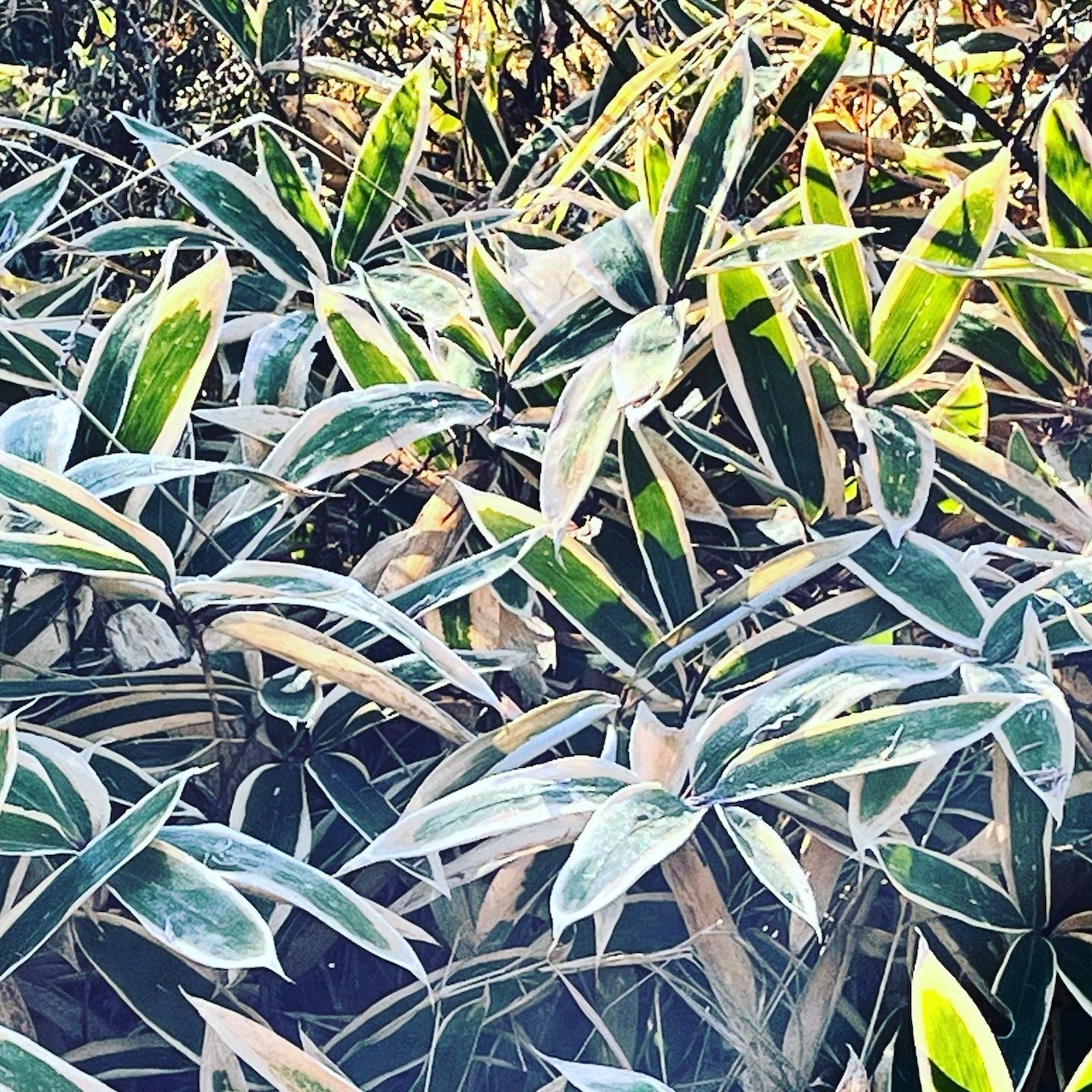 歩き始めは足元の熊笹に霜が降りていました。