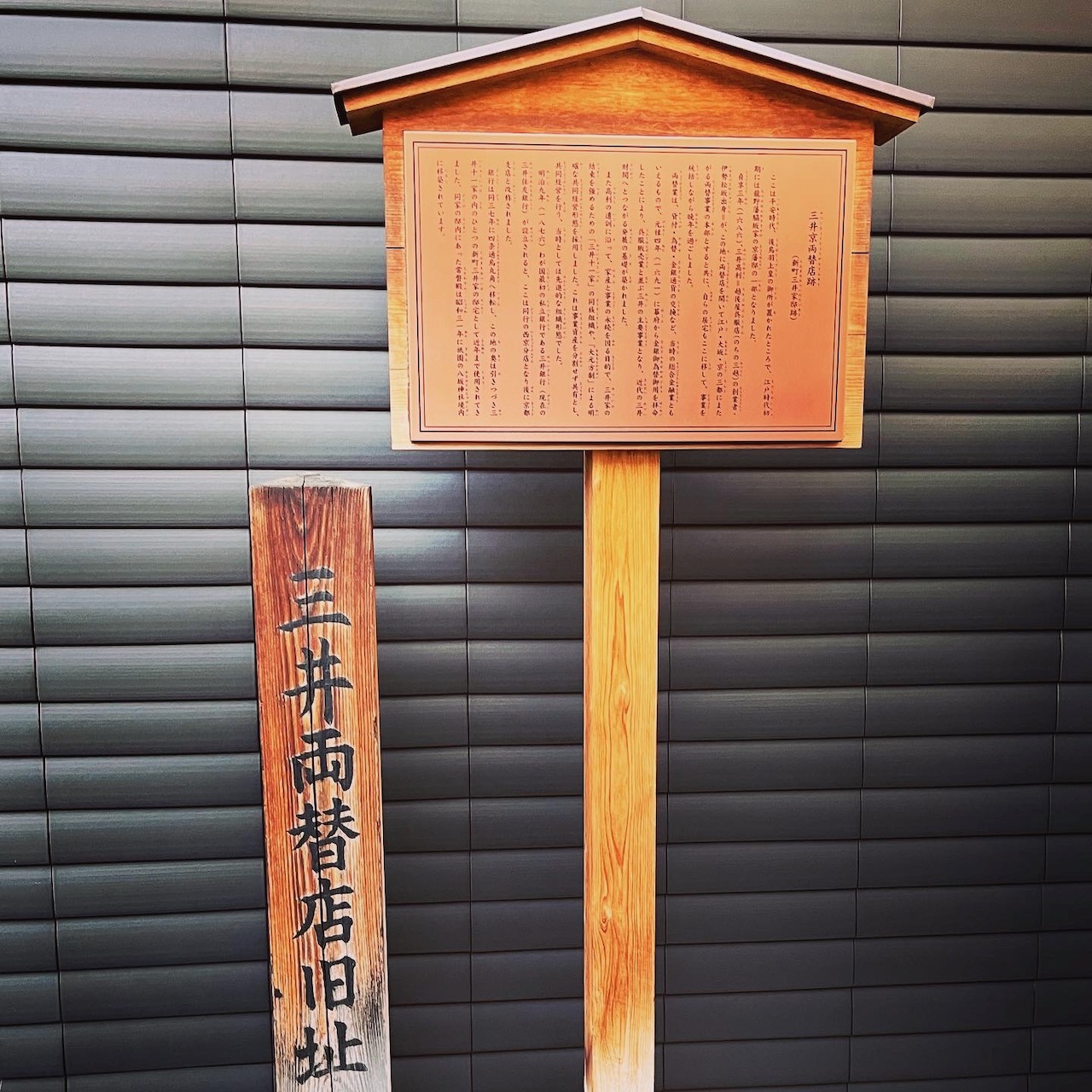 ホテルのすぐそばに、「三井両替店旧趾」(新町三井家邸跡)という看板が。