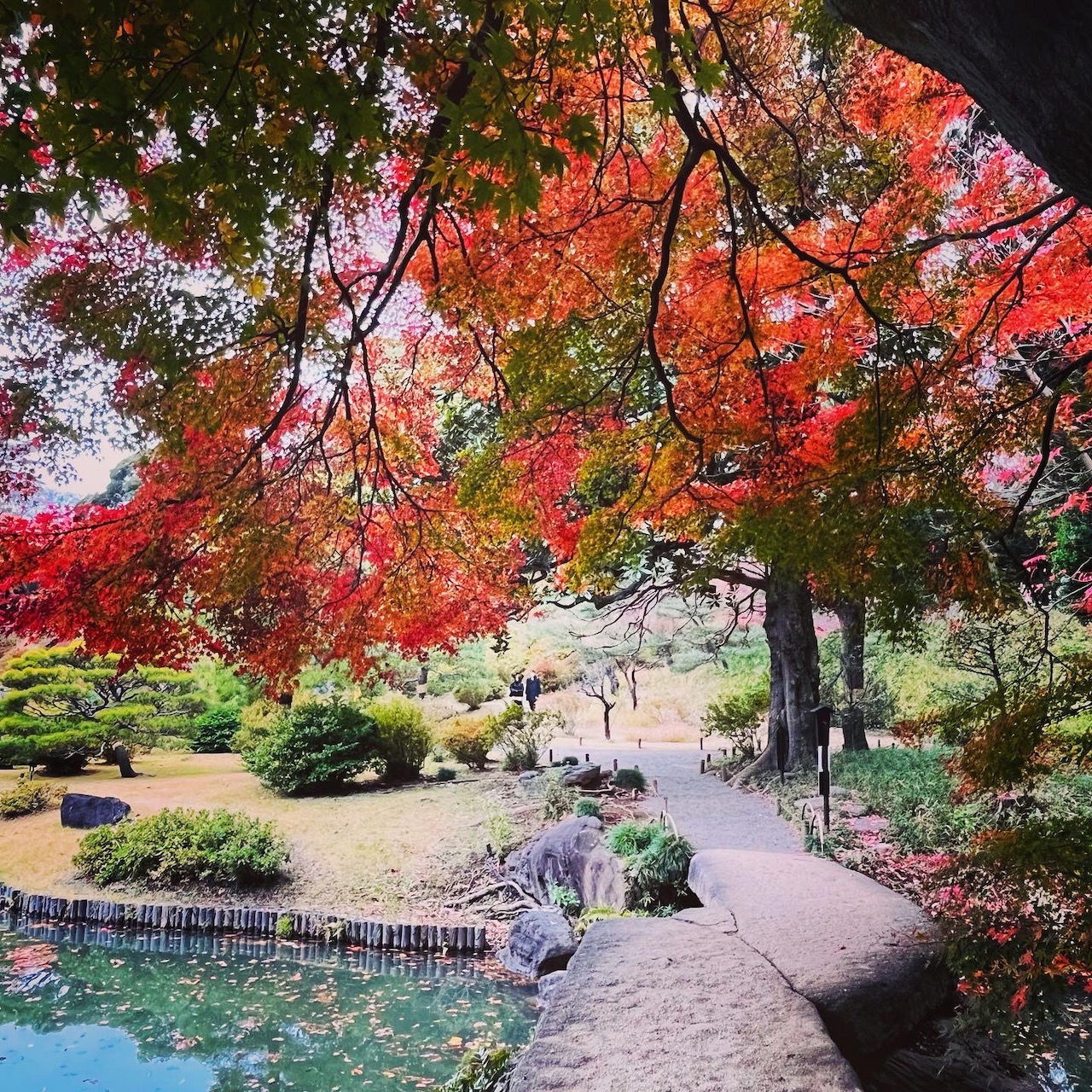 Les grands arbres bien entretenus, les feuilles d’érable et de ginko, les pins séculaires… et une petite maison de thé au bord de l’étang.