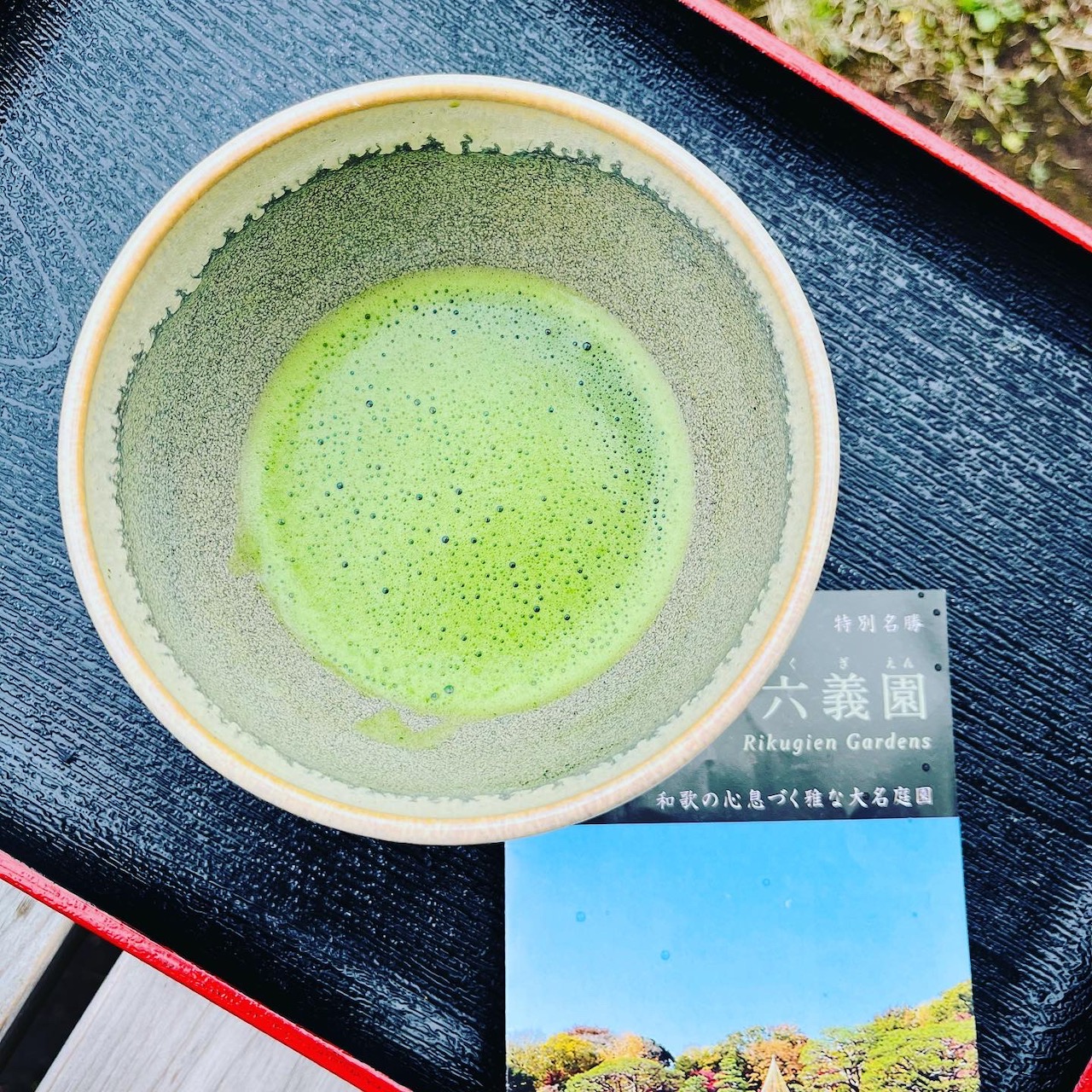 池のほとりの茶屋でいただく抹茶に心和みました。
