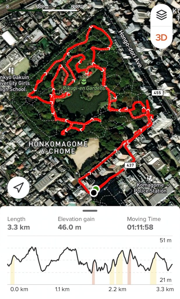 Super cold day but beautiful stroll in Rikugi-En, one of hundreds years old traditional gardens in Tokyo. Turned twice around the big pond. Good to be out and walk even a tiny small bit. 3.3 km