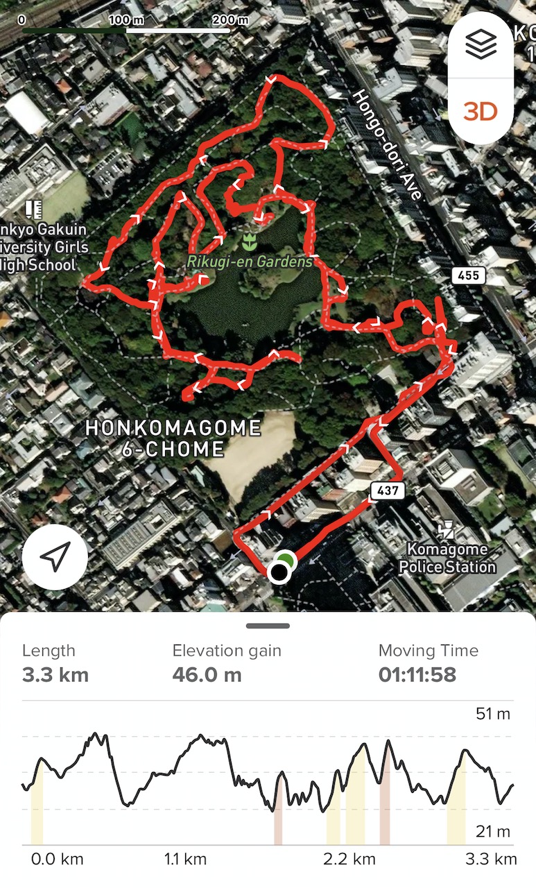 Super cold day but beautiful stroll in Rikugi-En, one of hundreds years old traditional gardens in Tokyo. Turned twice around the big pond. Good to be out and walk even a tiny small bit. 3.3 km