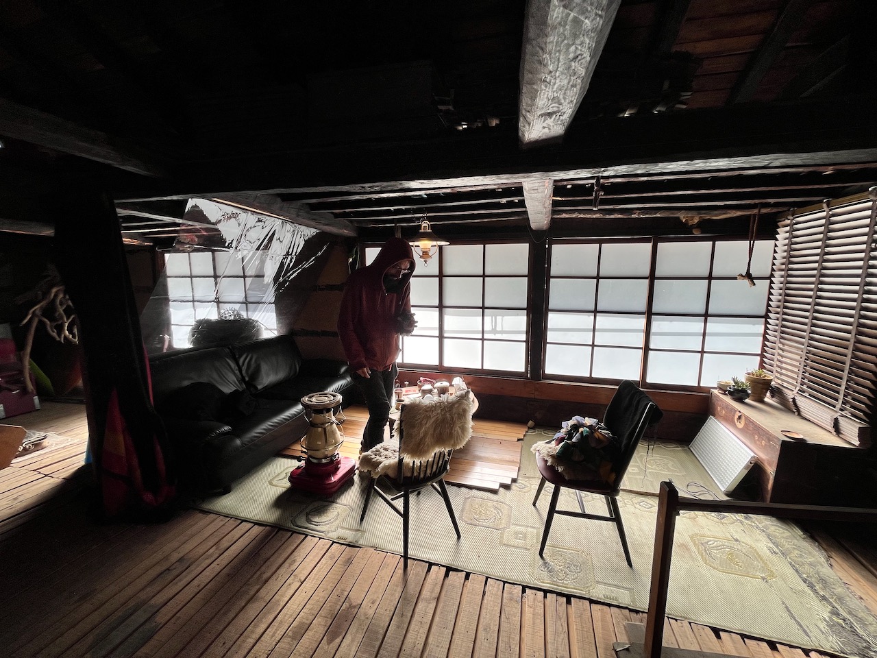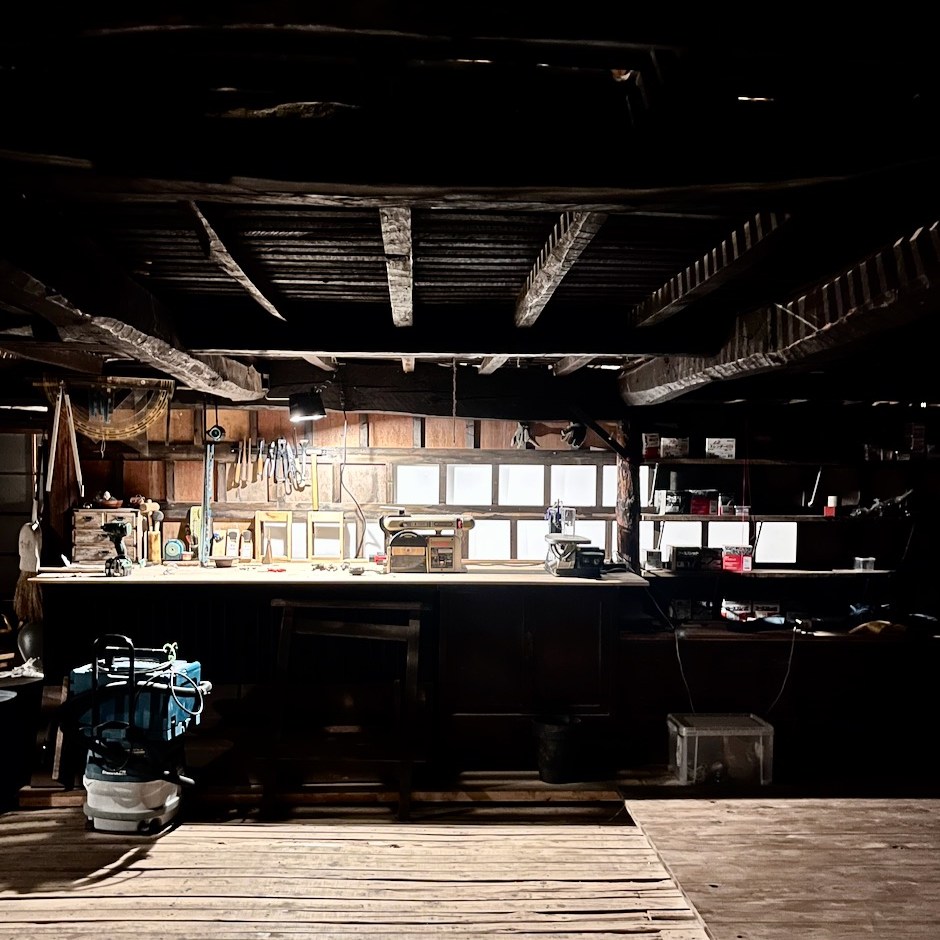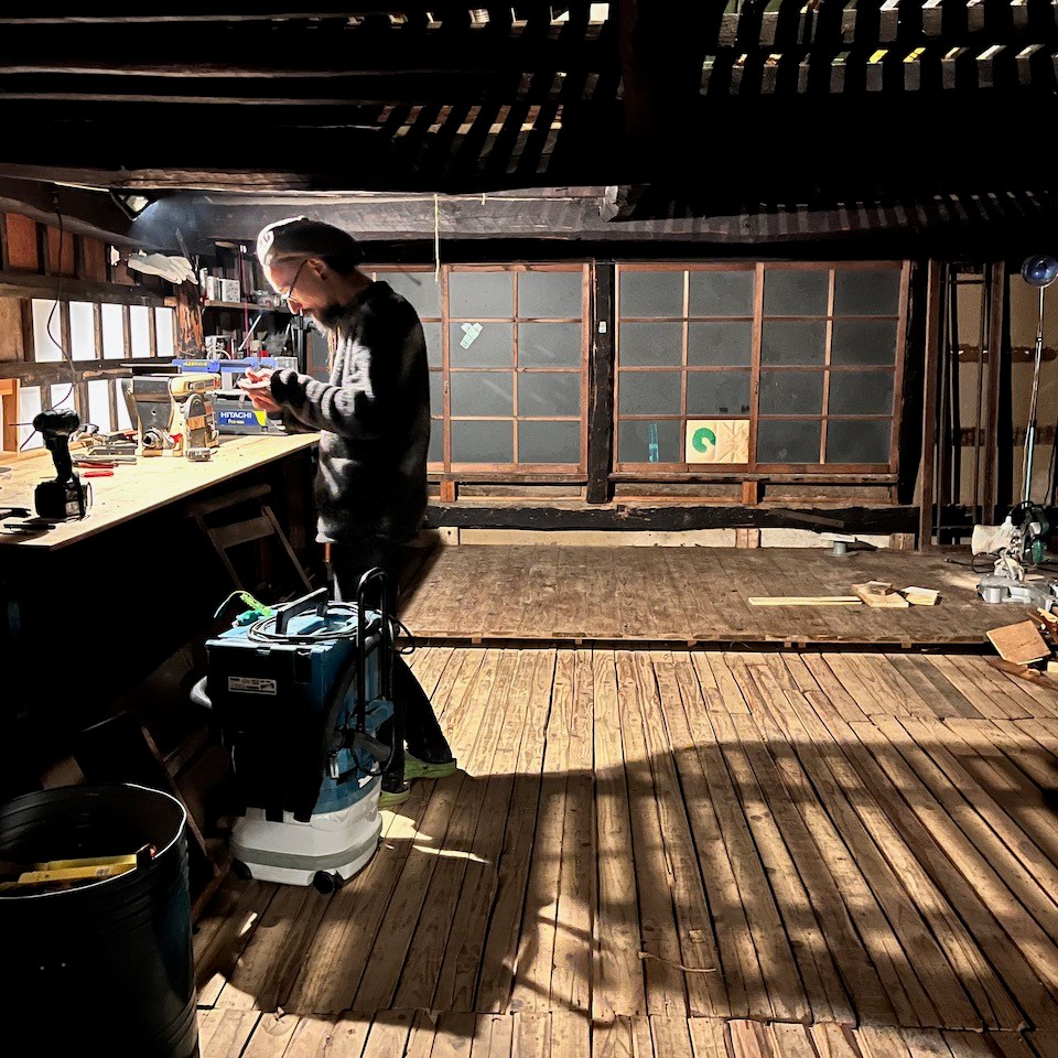 大月の家は去年の今頃はじめて来たときは2階ー3階ががらんどうだったのですが、もうすっかり「作業場」となっています。