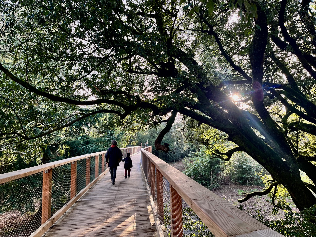 高く伸びている立派な木々。地上を歩いていれば下から見上げるしかできないはずですが、tree topの名前の示すとおり、「橋」の通路の上から見る姿は、また趣が違っていて、素晴らしかったです。