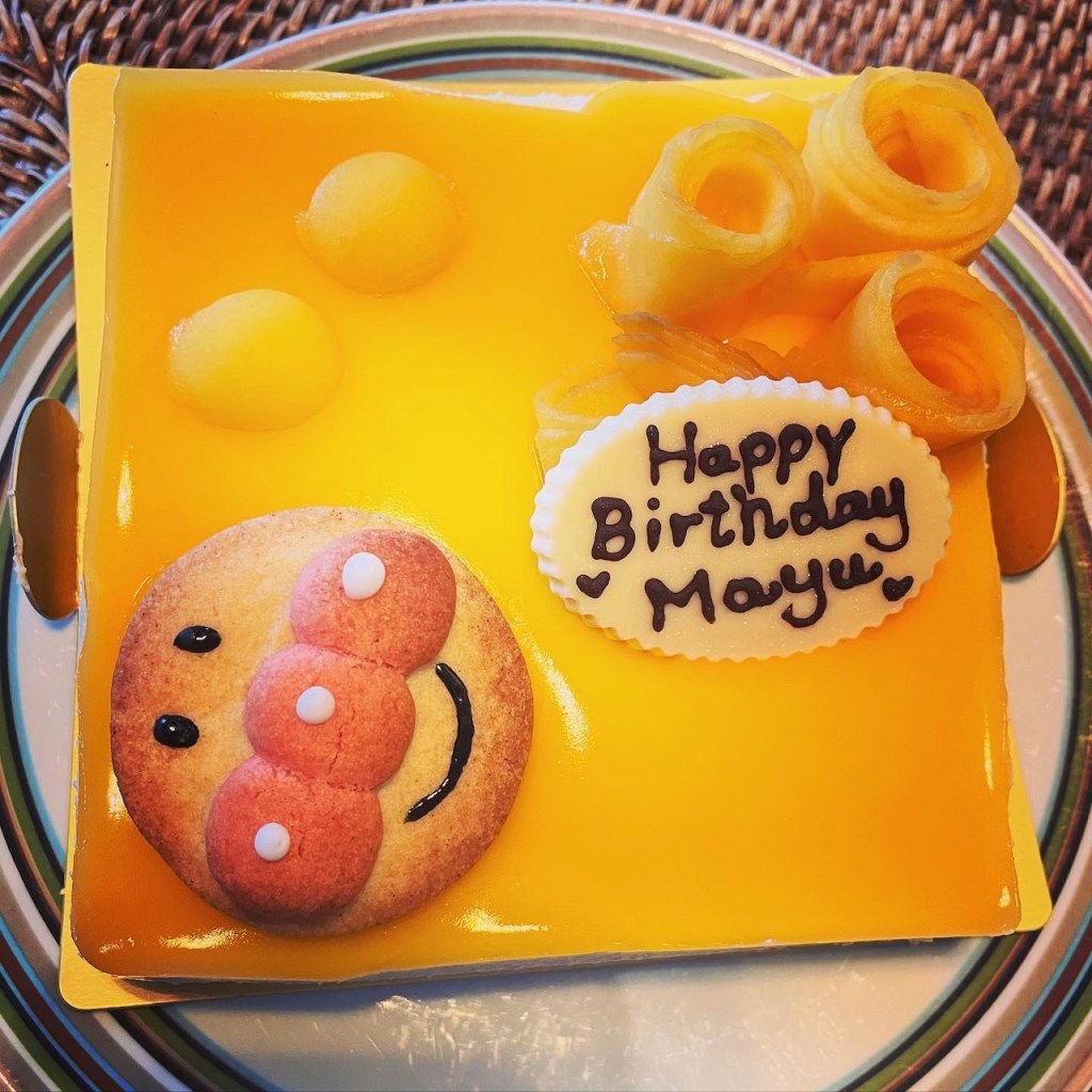 「あんぱんまん」のついたマンゴムースのケーキで、誕生日をお祝い!