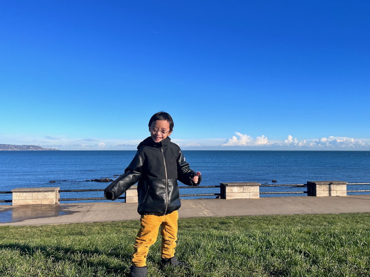 Koちゃんは海沿いの公園でいっぱい走っていました。