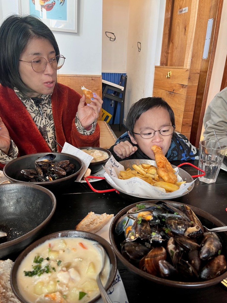 フィッシュ&チップスも、ムール貝も、チャウダーも全部美味しかった。