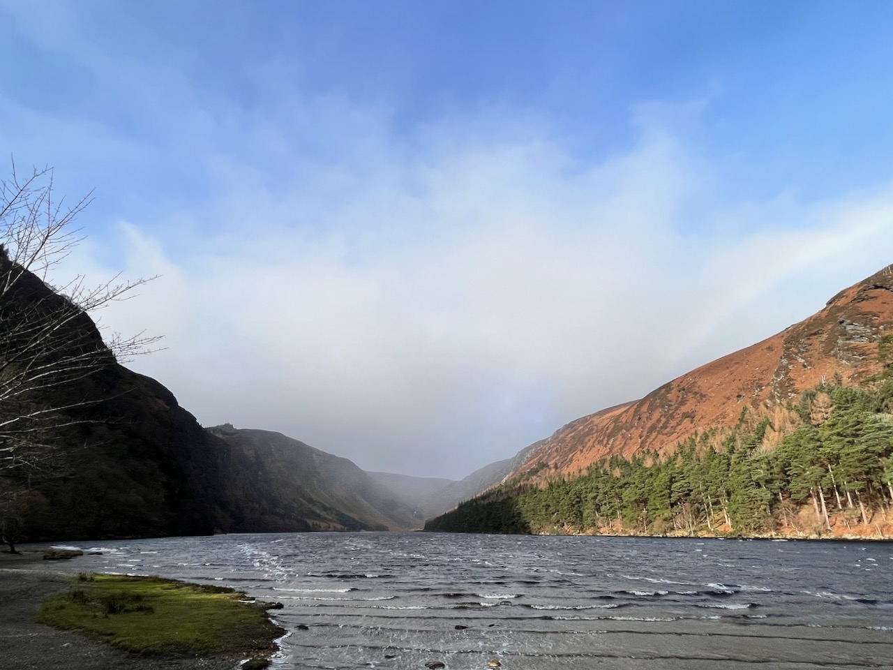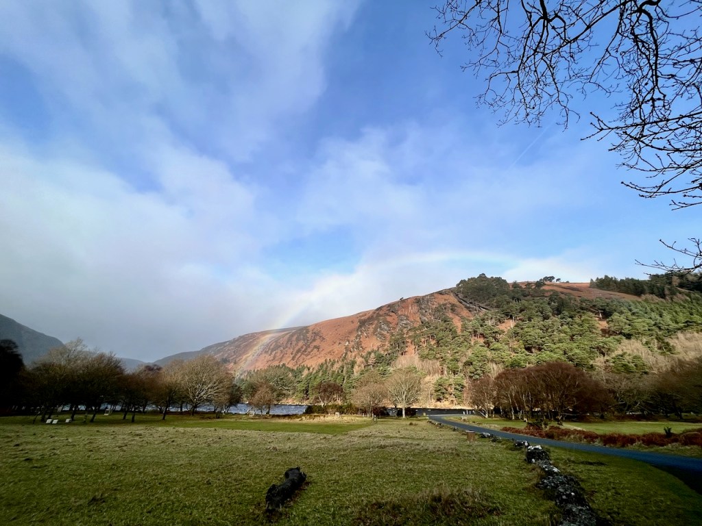 Fri 3 Feb 2023, Glendalough, only a gentle stroll, 7.39 km Elevation gain 25 m. Beautiful rainbow at Upper Lake.