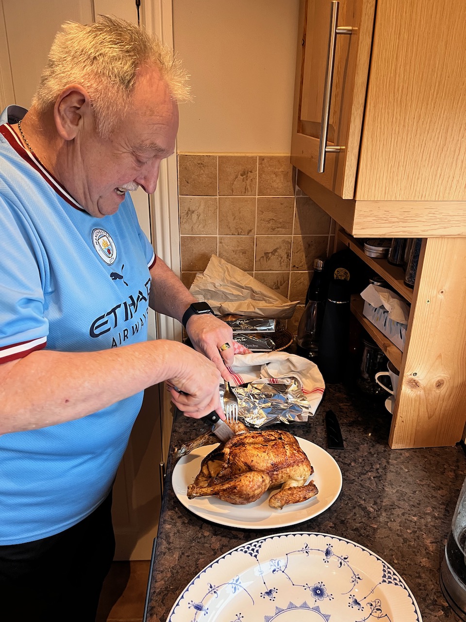 たっぷり歩いて家に戻って、bjmのチキンの遅いランチ。