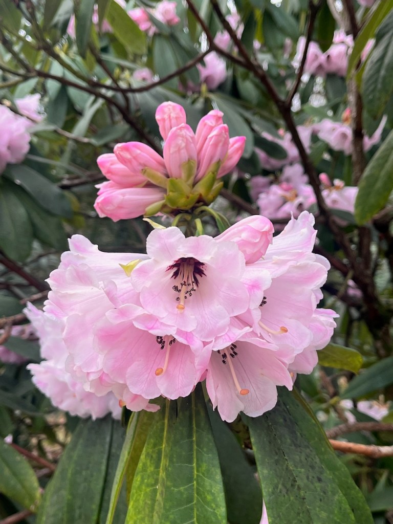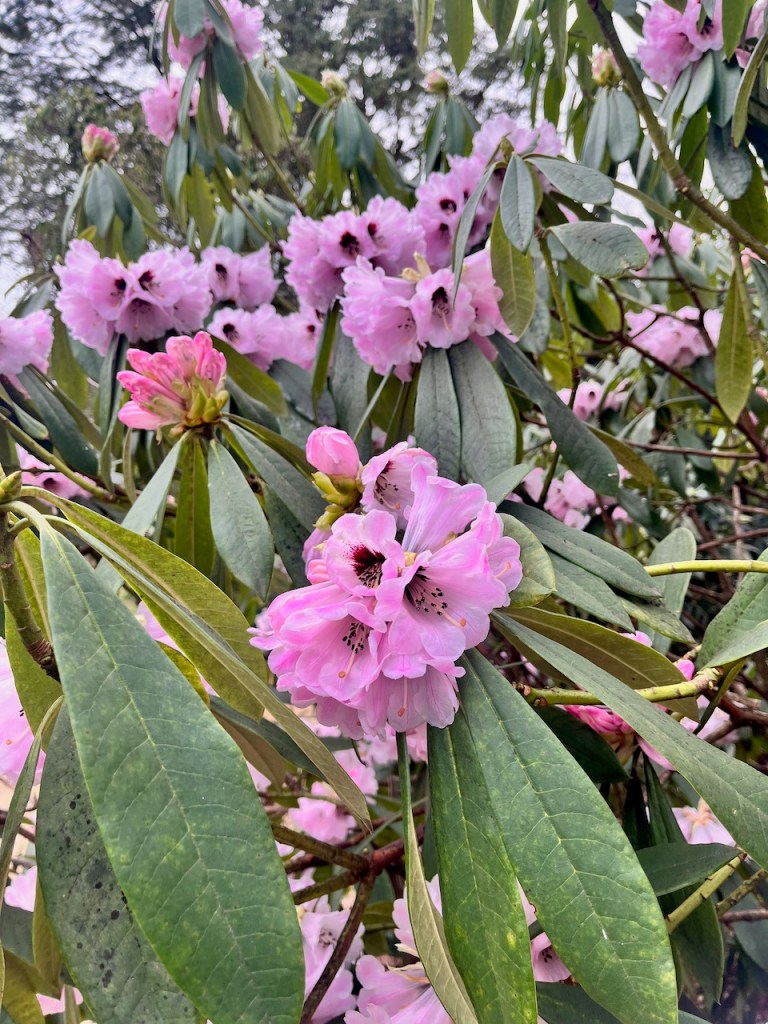 これから庭じゅう、いろいろな色の石楠花のお祭りが続く、お花見シーズンの幕開けです。