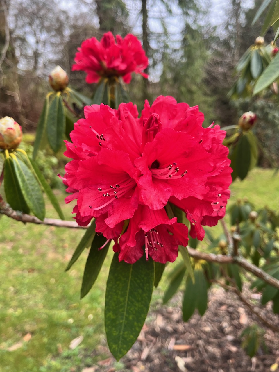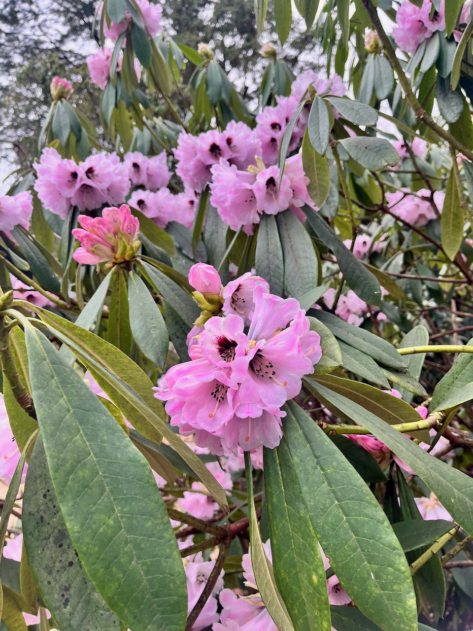 これから庭じゅう、いろいろな色の石楠花のお祭りが続く、お花見シーズンの幕開けです。