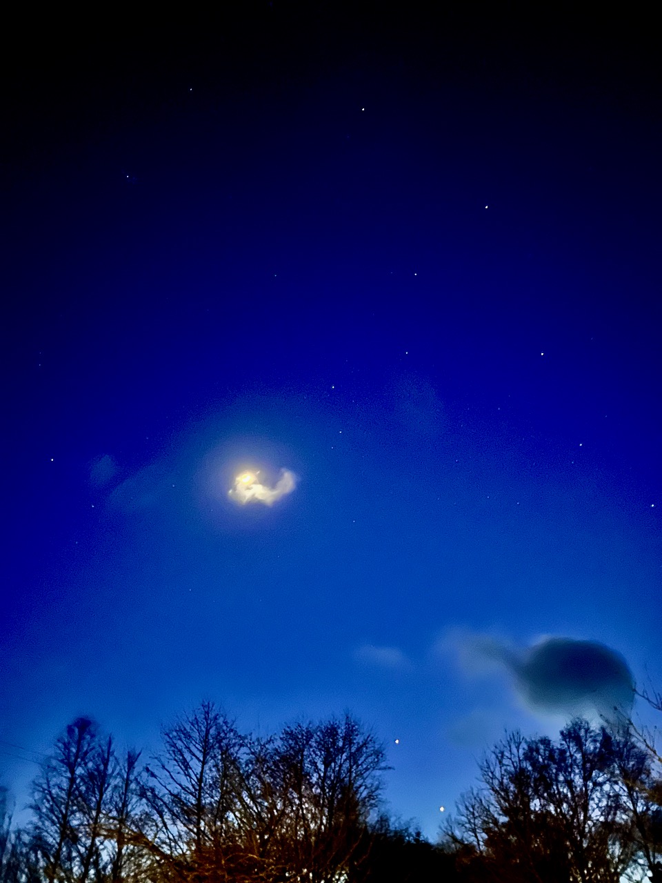時にはオレンジ色のまんまるなお月さんが山の端から登ってくるところや、青い空に白く輝く三日月が、iPhoneではうまく撮れないけど、目の奥に焼きついています。