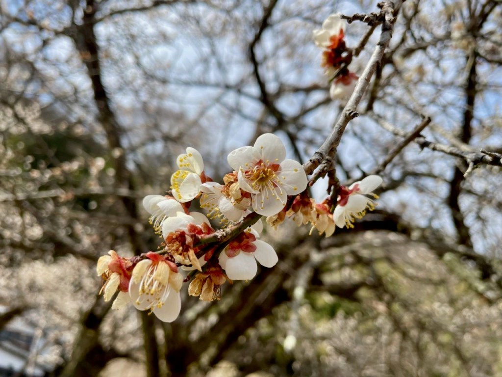 日本の大月のお家では、裏の梅の花が満開になってるようです。息子が花の写真を送ってくれました。