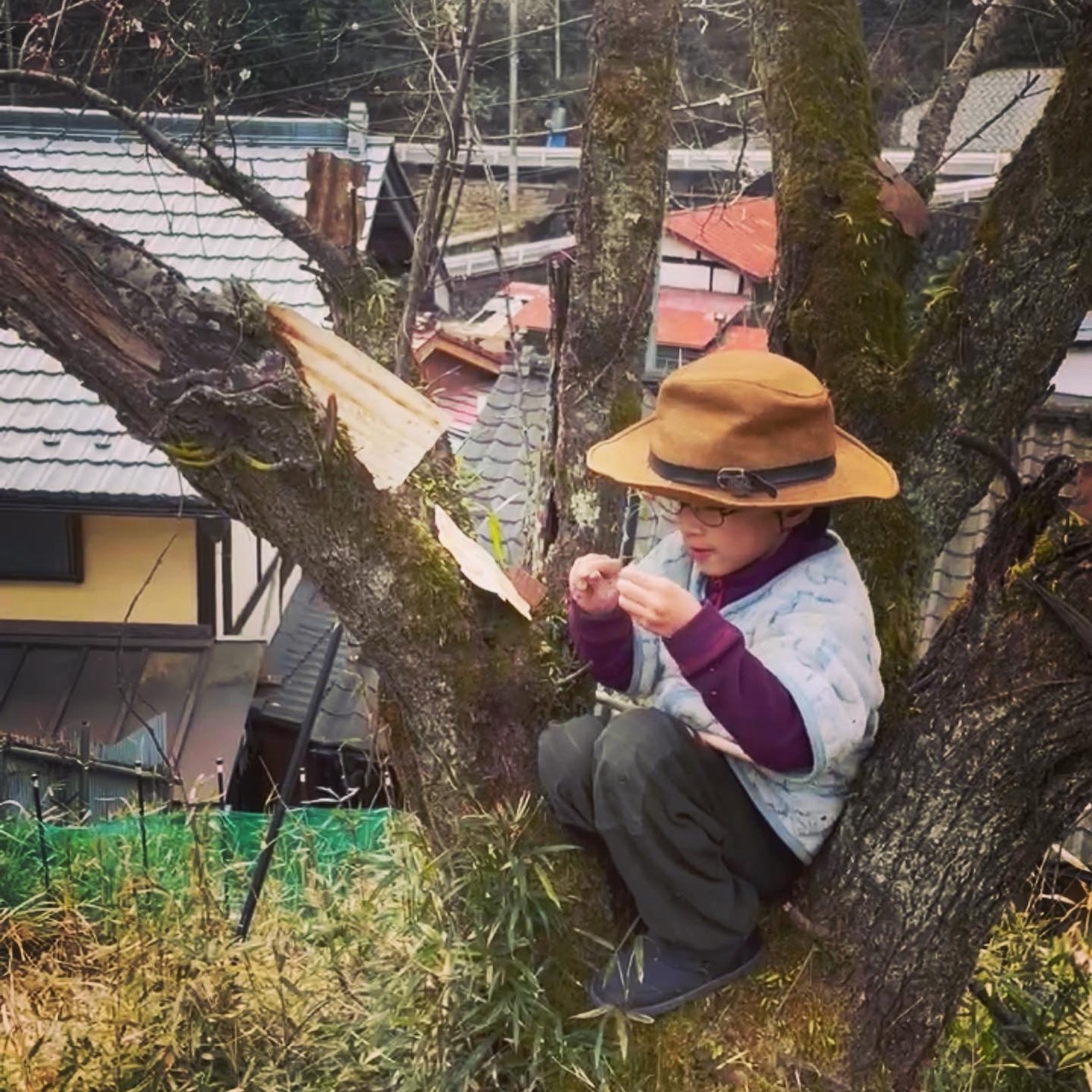 あれれ 木のところに誰かいるぞう。