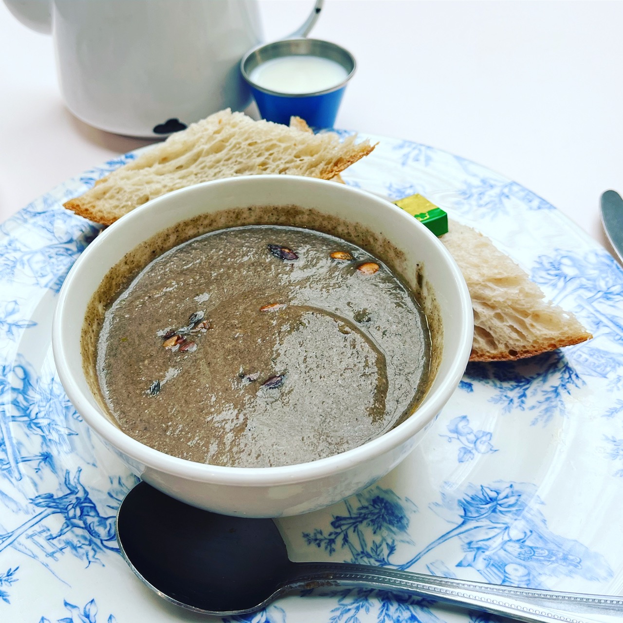 グリルガーリック入りのマッシュルームスープ パンチが効いた味で美味しかった。