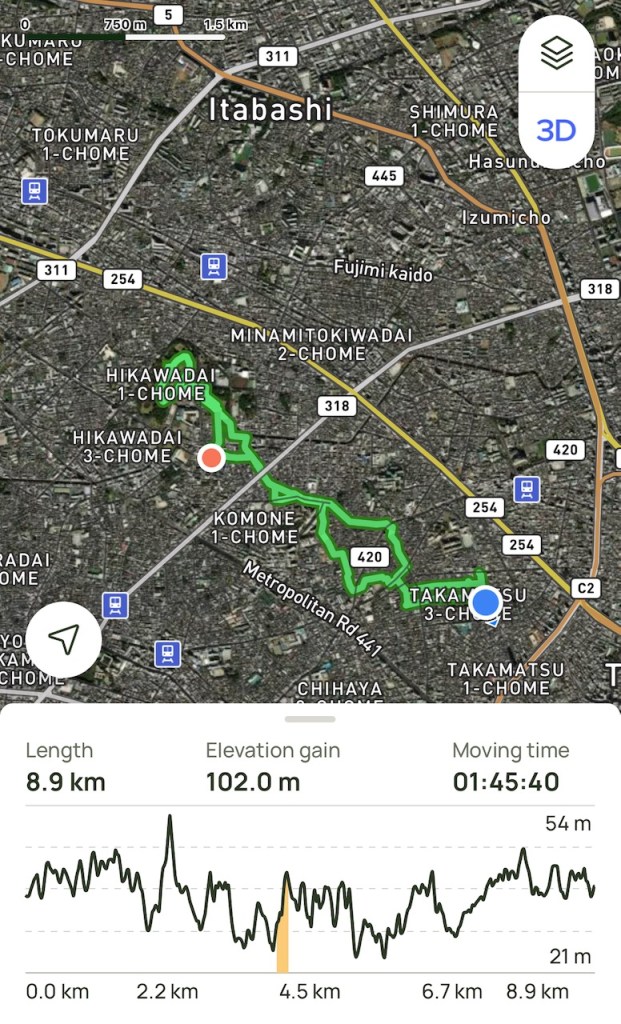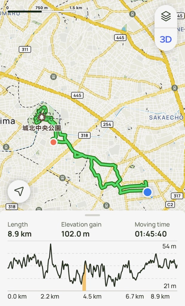 3月17日(金]今回の滞在1日めは絶賛時差ボケで午前3時半からバッチリ目覚めてしまい軽く運動しようと出かけたものの、目的地をいつか行ってみたいものだと思っていた城北中央公園に設定したので、往復結局8.9km歩いてしまいました。