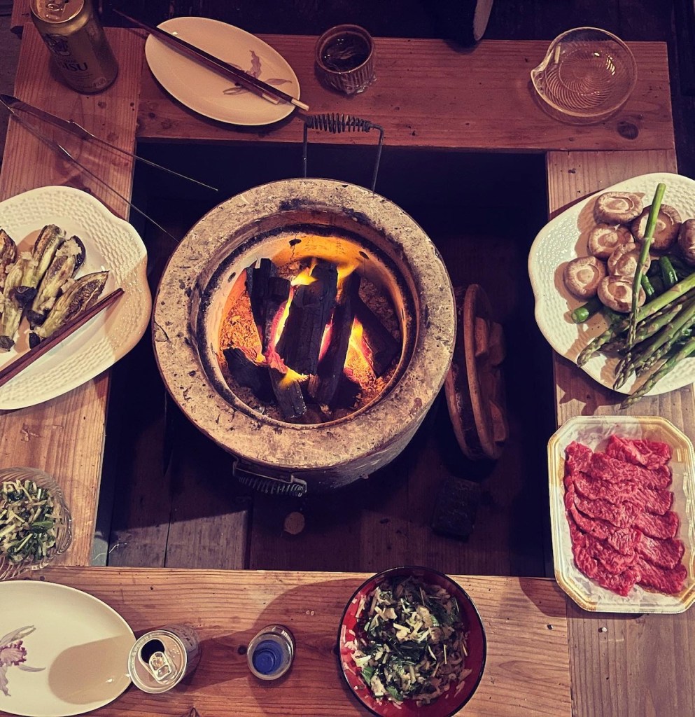 Masanori a créé un coin barbecue, super sympa, dans la partie de la maison qui était une ancienne cuisine.