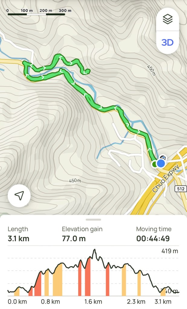 Wed 22 March 2023. I walked only 3.1 km and wondered if I could reach the small mountain top near my son’s house but it was sooo very steep that I came back down!