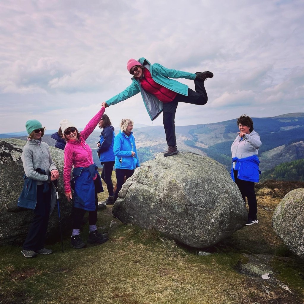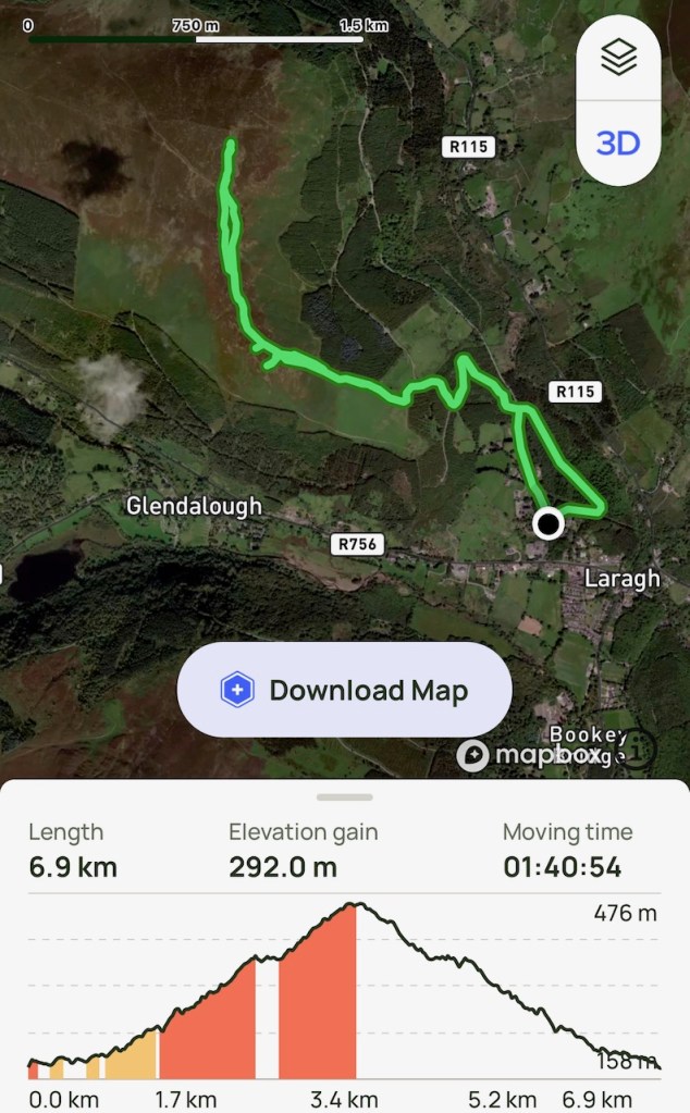 Wed 26 April 2023. Up Brockagh Mountain near Glendalough, 6.9 km, elevation gain 292 m. Sunshine, fresh air and nice company, followed by relaxing coffee time. Great to be part of all that.