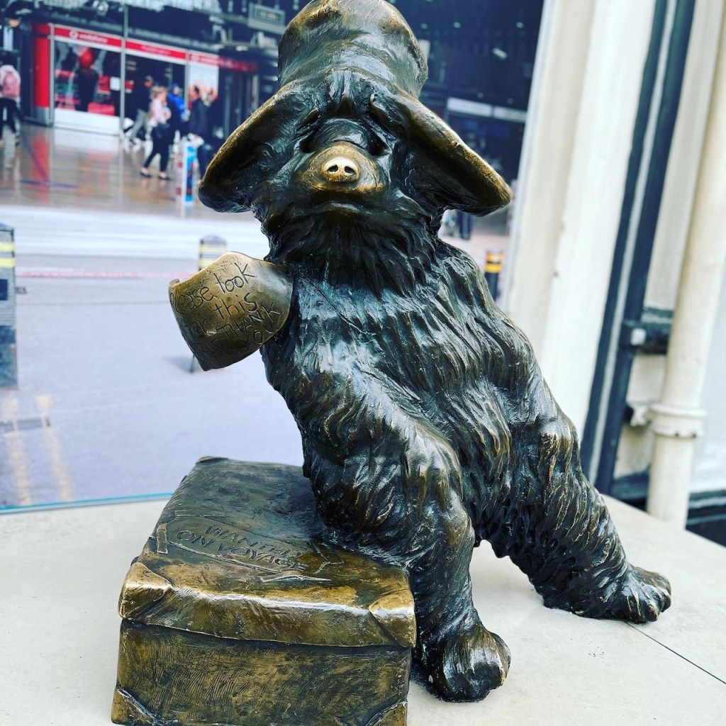 ヒースロー空港からは電車に乗ってパディントン駅へ。パディントンベアにも会えました!