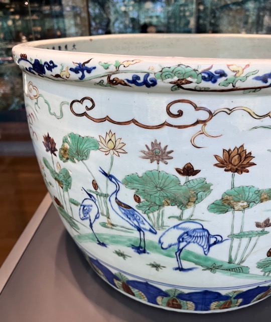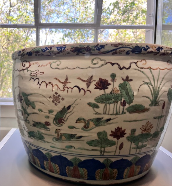 大きな金魚鉢、景徳鎮。明の13代皇帝 隆慶帝(治世は1567〜72年)の時代のもの。