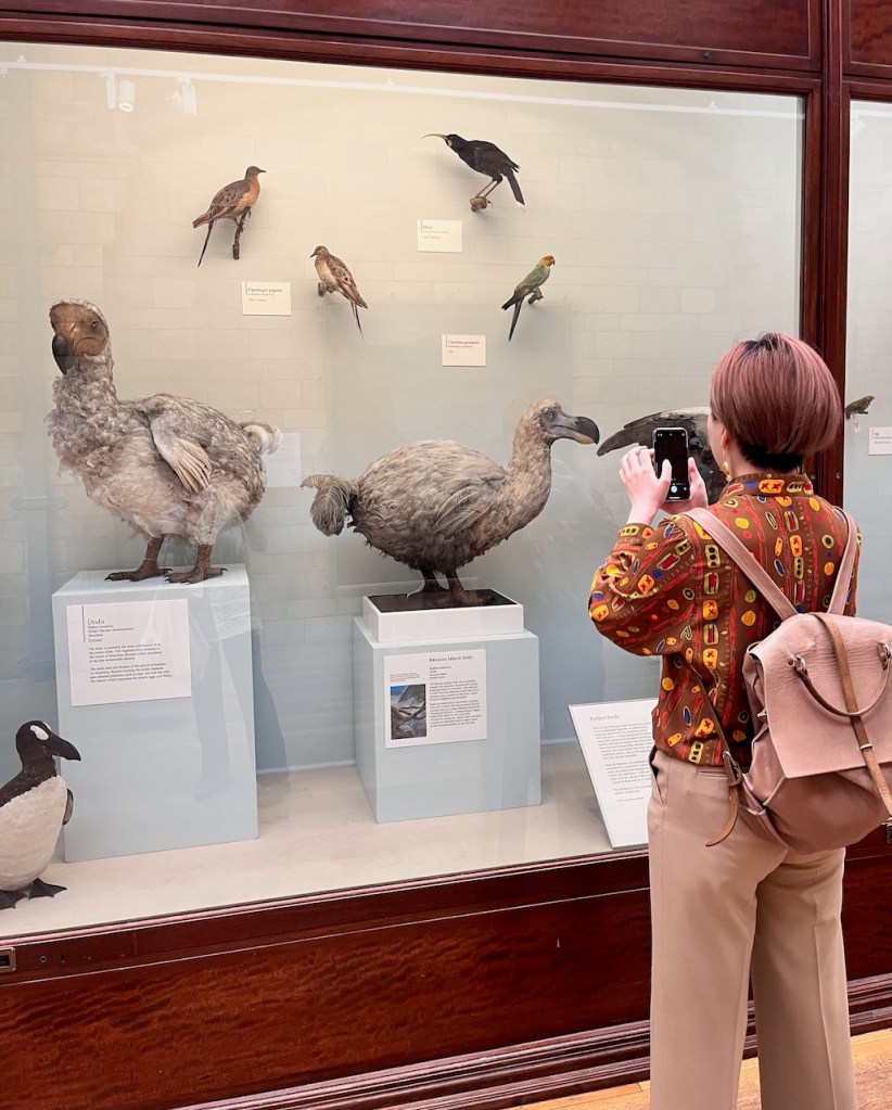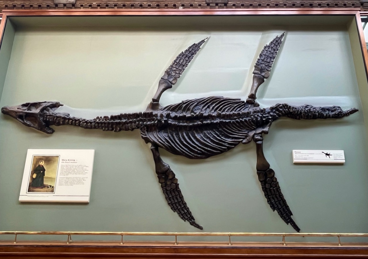 絶滅してしまったドードー鳥や、最初のイクチオザウルスの全身化石を発見した古生物学者メアリ・アニングの紹介など、通路沿いに見ながら進みます。
