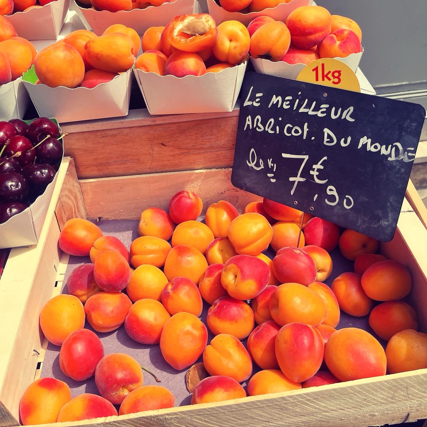 チーズ屋さんで作っているオリジナルのヨーグルト poire-verveineなんていう変わった味のがあって、最高に美味しかった。さくらんぼも美味しい季節。