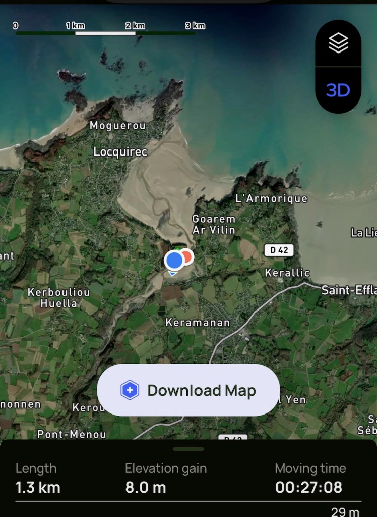 Wed 19July 2023. Locquirec, Bretagne in France. Every day after the work, I walk along the side of the sea on the beautiful white sand beach. Little by little I discover a bit more of the area.