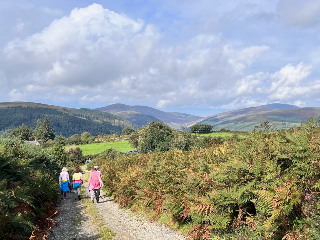ウイックロウの山々やグレンダロッホの谷を遠くまではっきりと見渡せて快適。降りは森のなかを通り抜ける道を。8.99km 標高差392m