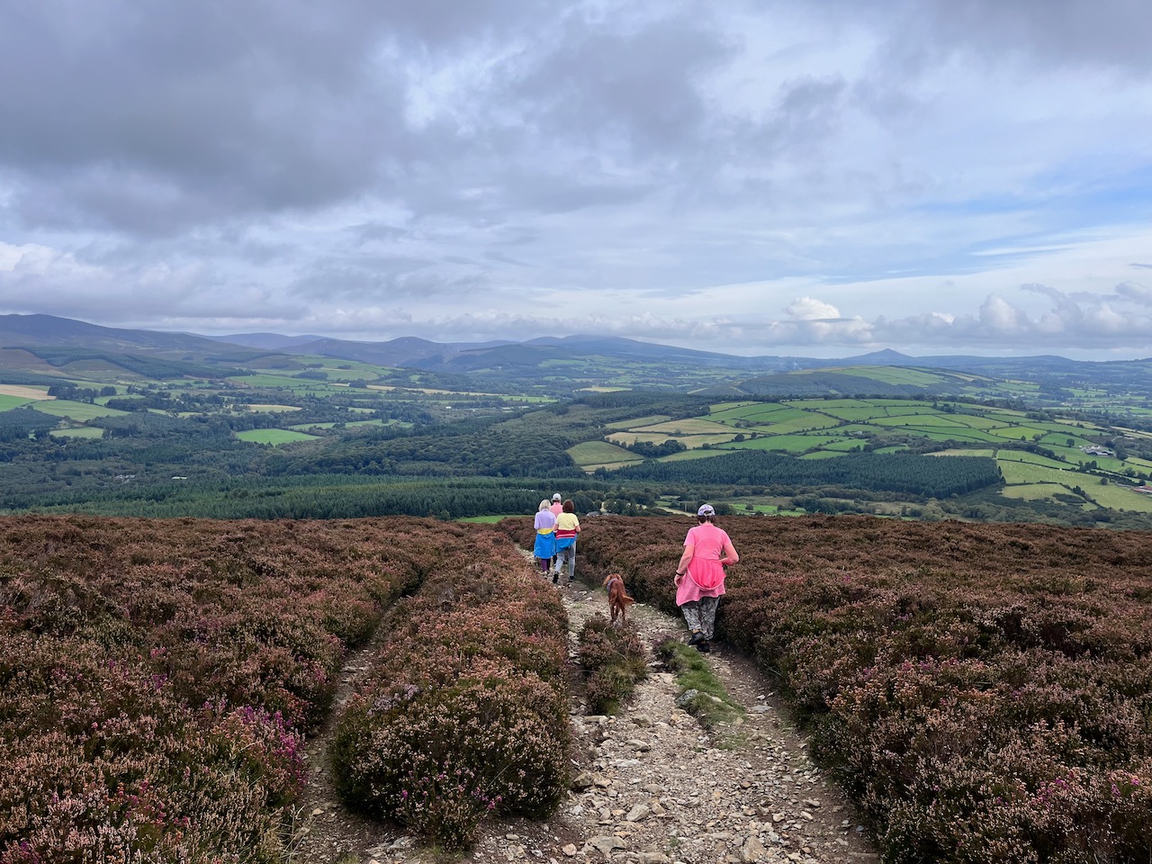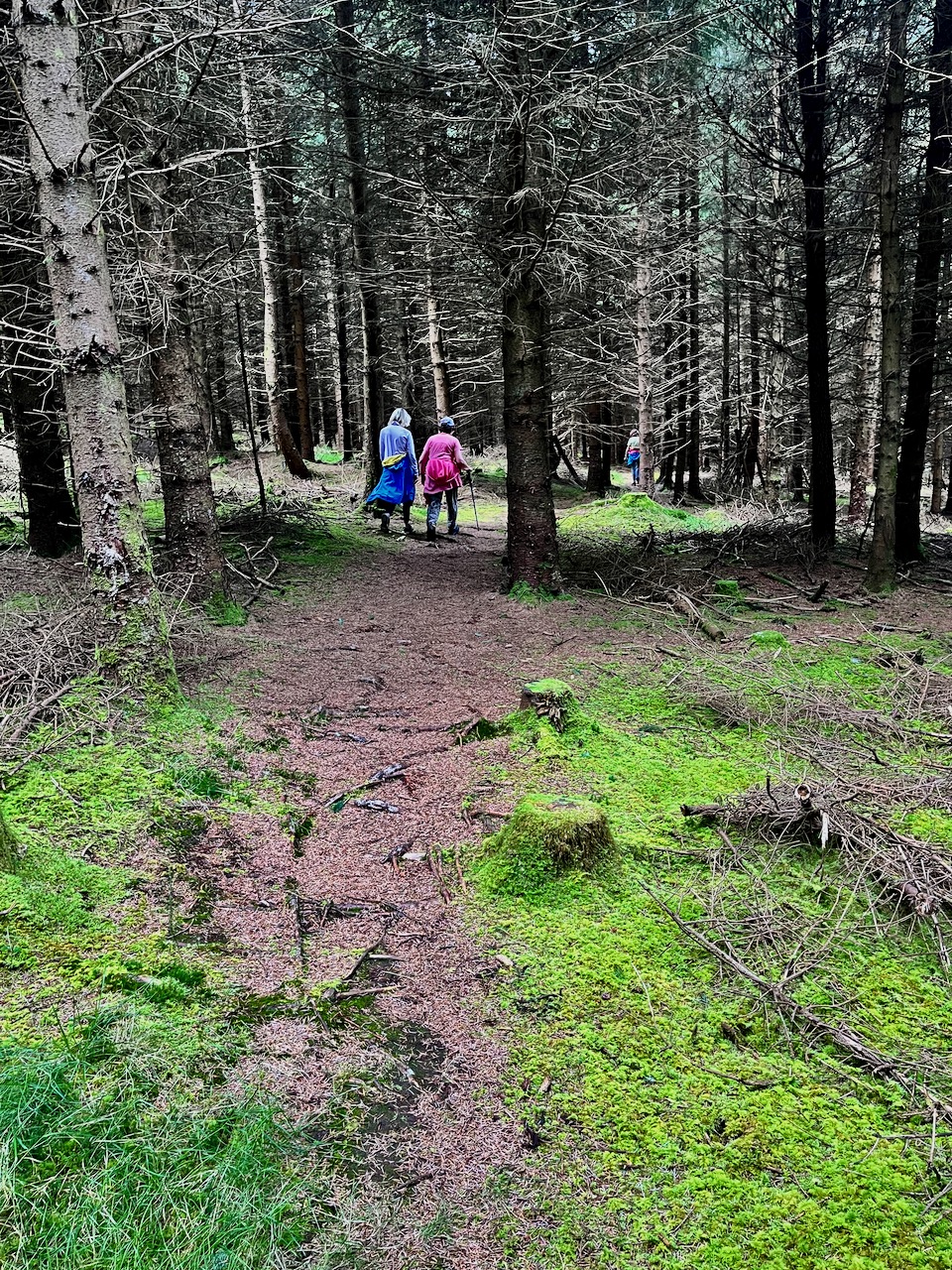 ウイックロウの山々やグレンダロッホの谷を遠くまではっきりと見渡せて快適。降りは森のなかを通り抜ける道を。8.99km 標高差392m