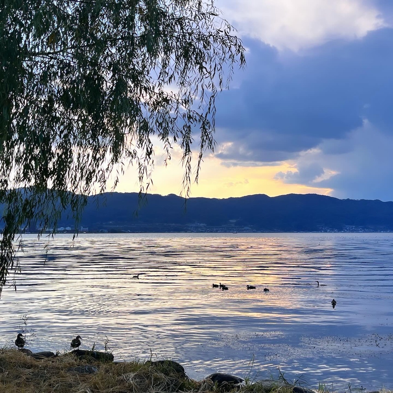 大月から諏訪湖畔へ。夕食前に少しだけ歩きに。
