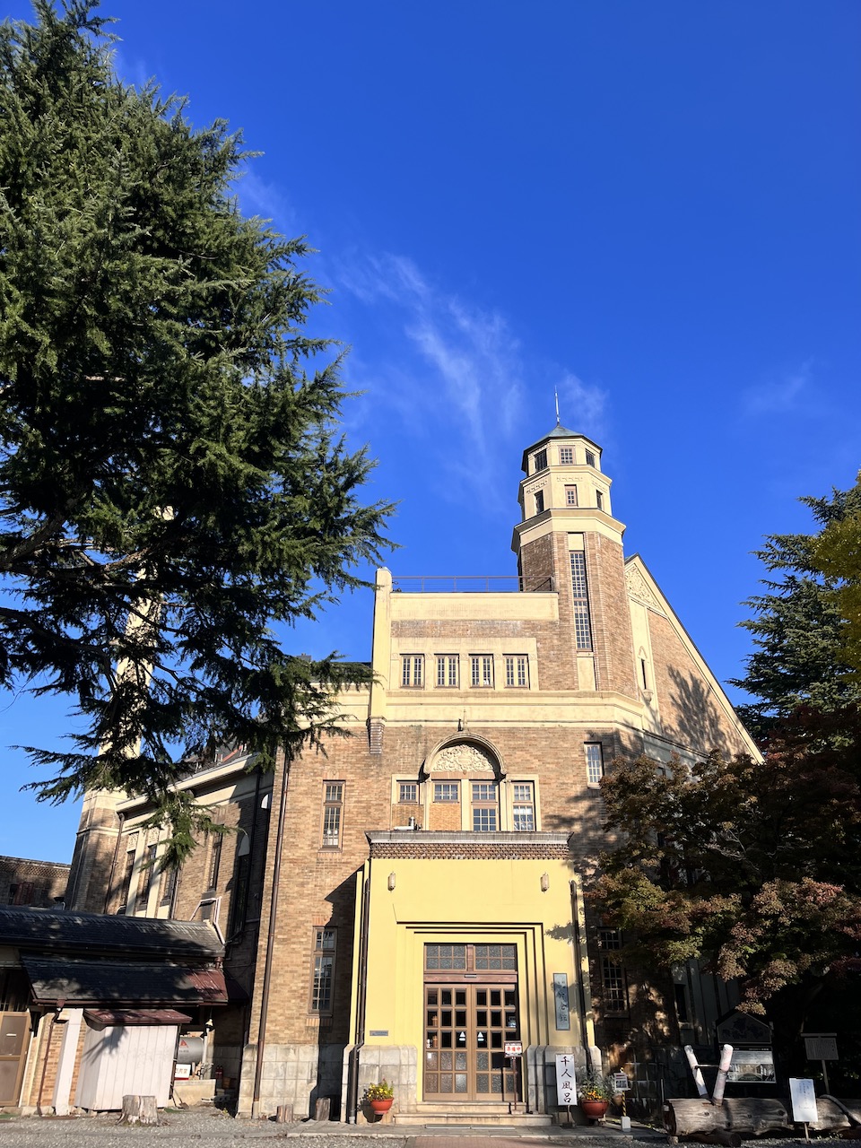 このときは反対側へ歩いたけれども、平らだし景色も変化がなくて退屈なので、引き返して裏通りを探検したりして、隣にある片倉館の裏側から通り抜けて戻ってきました。