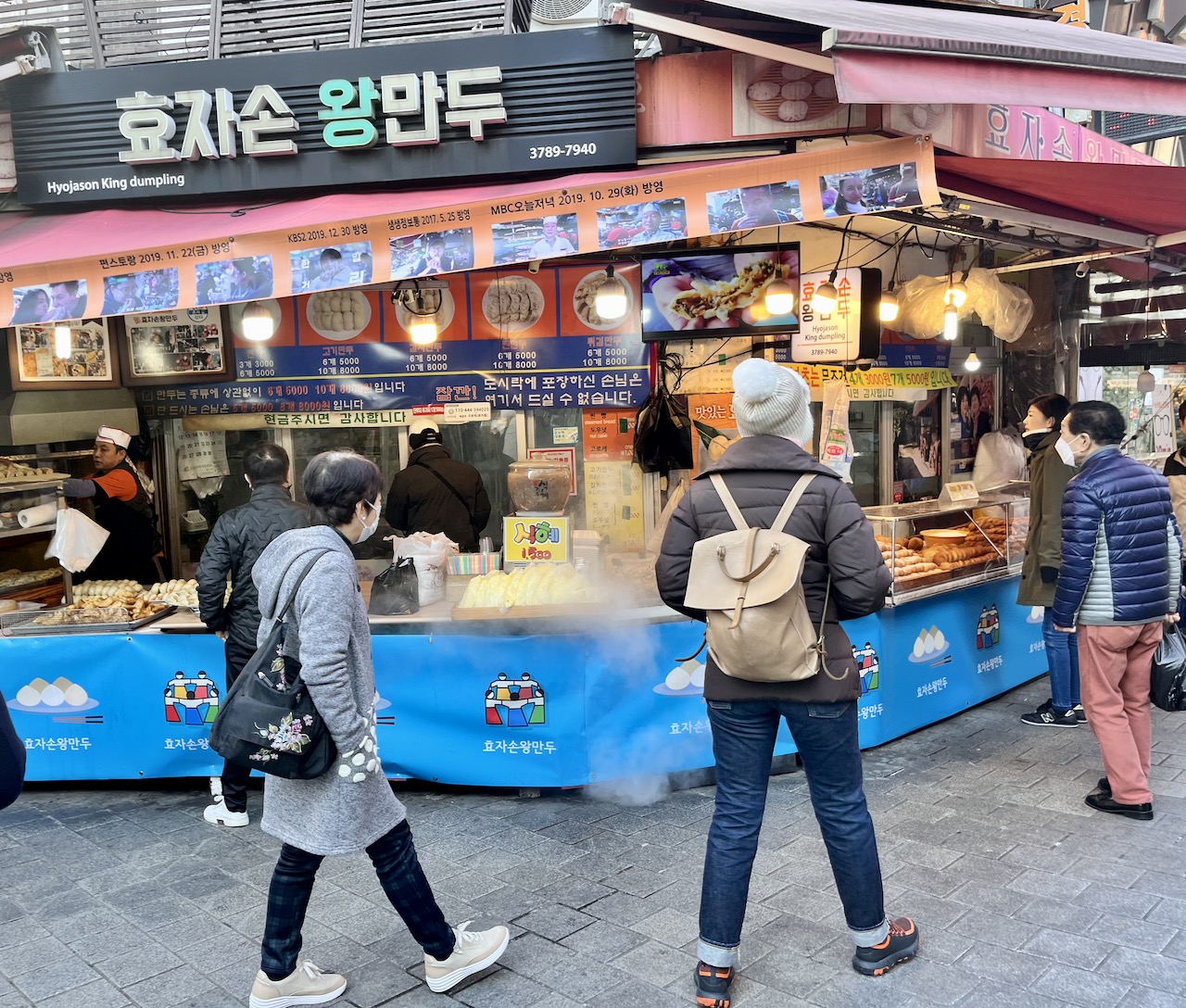 幸い、目的地の肉饅屋さんがすぐに見つかって(なんとなく位置を覚えていた)2階に上がって注文。蒸したての肉饅はキムチ入りと普通のと2種類。酢醤油をつけながら。