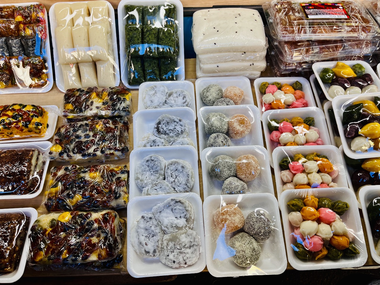 帽子や衣類、髪留めなどの小物類や、もちろん食品も!!ゆっくり歩いて買い物し始めたら、キリがなくなる感じ。どんどん歩いていくうちに、ドーナツ屋さんと餅屋さんに遭遇。