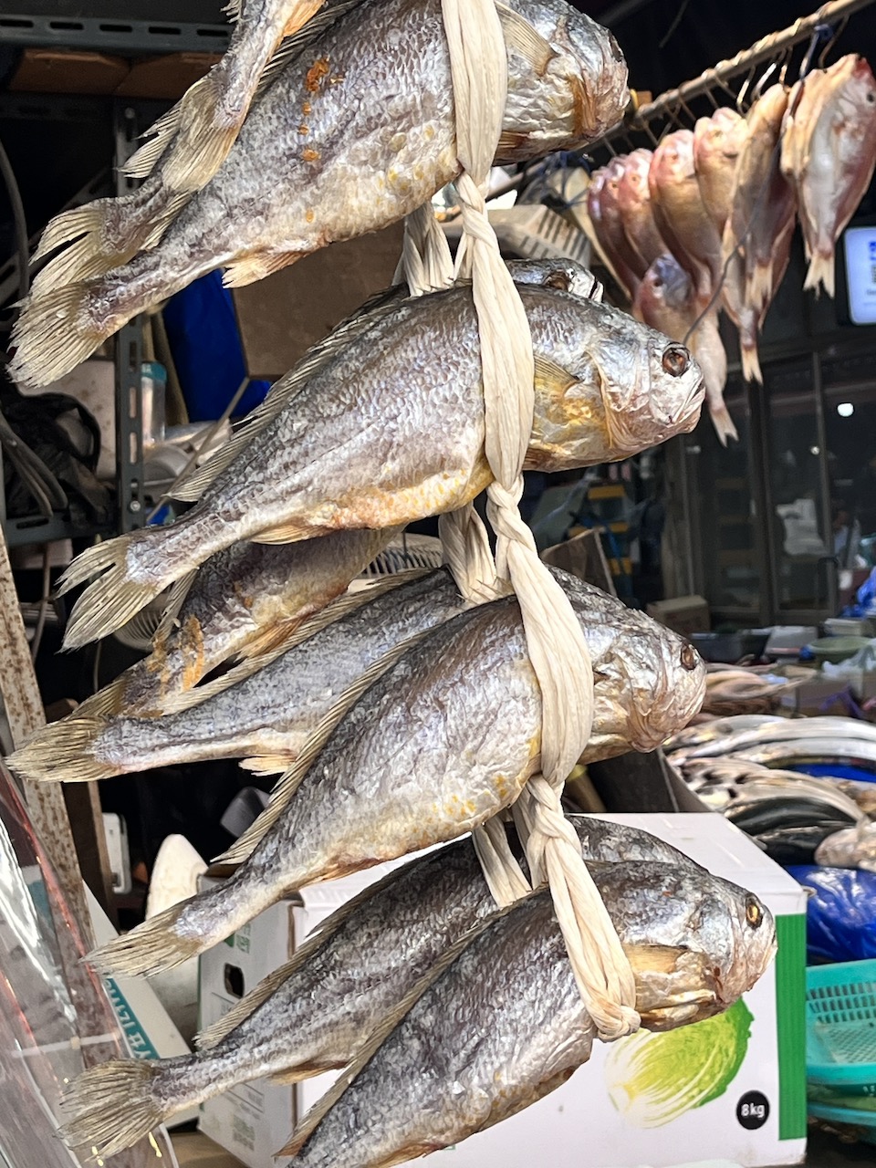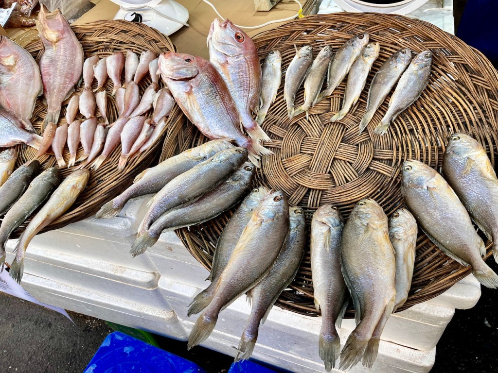 干した魚類も、いろいろな種類が!どうやって料理するのかなあ。