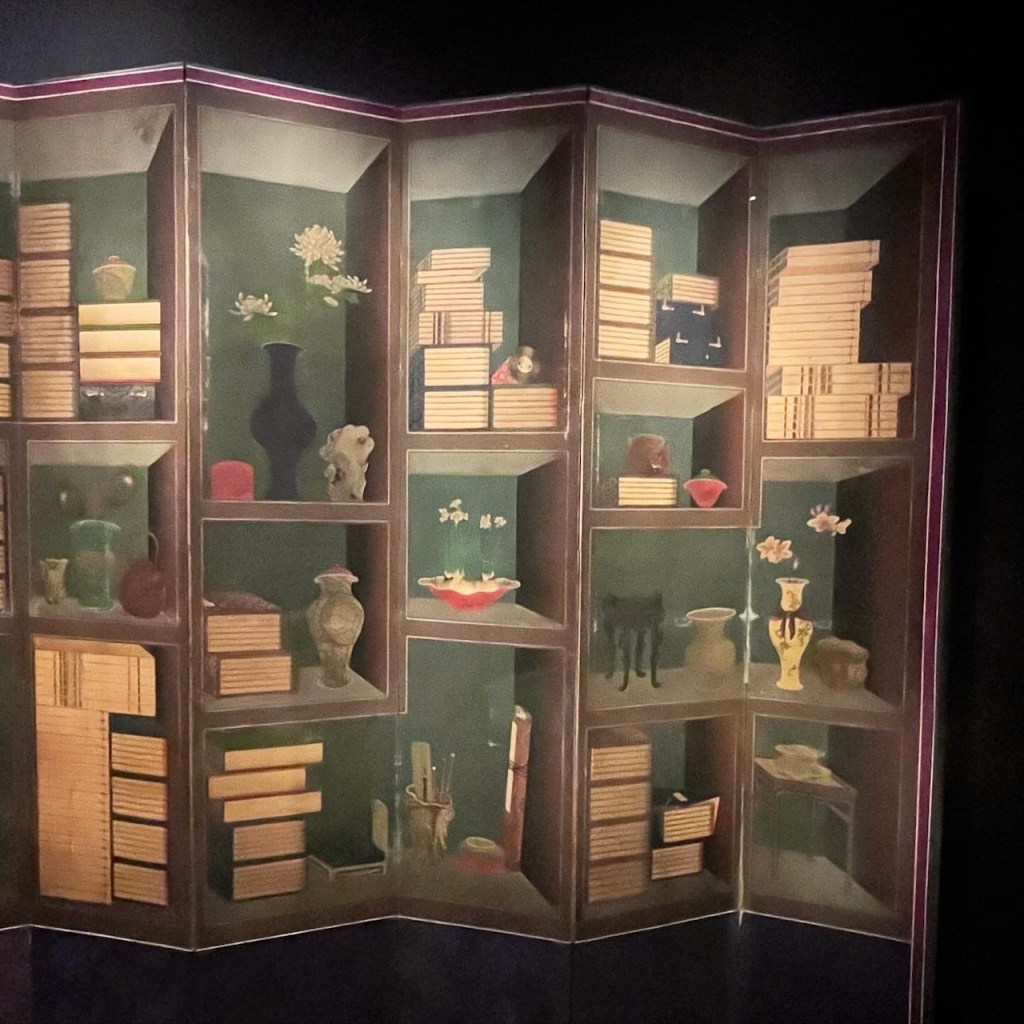 Yi Eungrok (Korean, 1808-after 1874) 17世紀後半になると李氏朝鮮では文化の爛熟期を迎え、両班から庶民まで書物を手にいれることができるようになって「冊架圖」という「本棚に縁起の良い花や果物、書物や書斎で使う筆や硯など様々なものを描いた屏風が流行した。