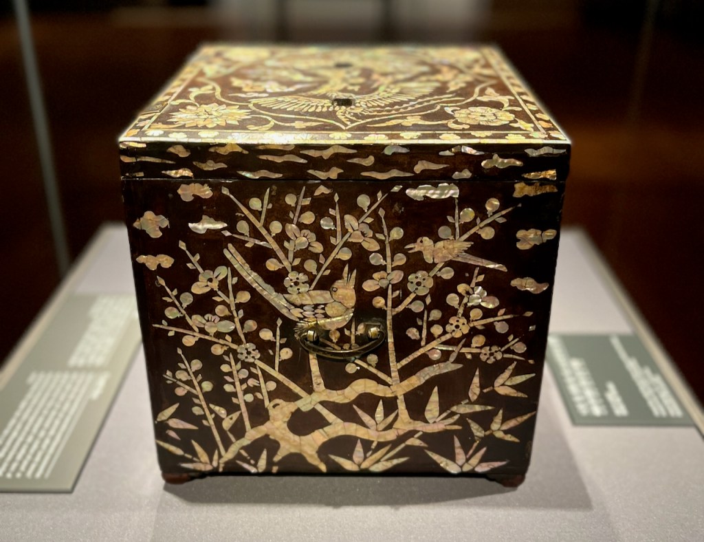 Comb Box with Phoenix, Flower, Bird, and Pine Tree Design Lacquerware with mother of pearl inlay. Jose dynasty, 17th-18th century.