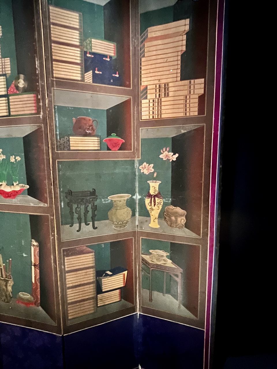Yi Eungrok (Korean, 1808-after 1874) 17世紀後半になると李氏朝鮮では文化の爛熟期を迎え、両班から庶民まで書物を手にいれることができるようになって「冊架圖」という「本棚に縁起の良い花や果物、書物や書斎で使う筆や硯など様々なものを描いた屏風が流行した。
