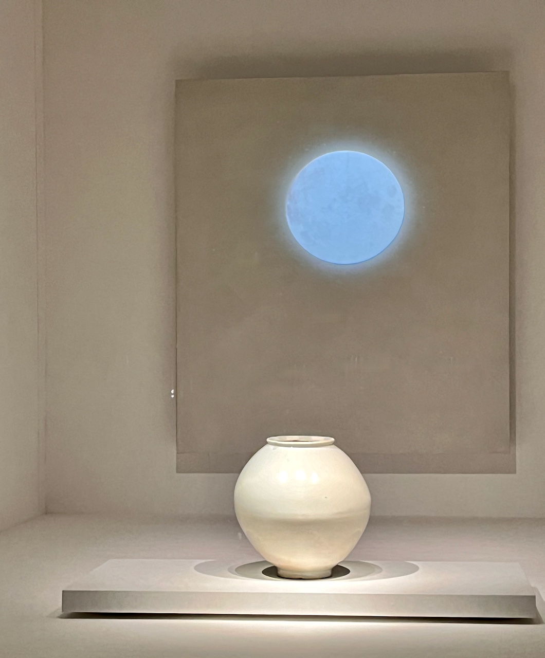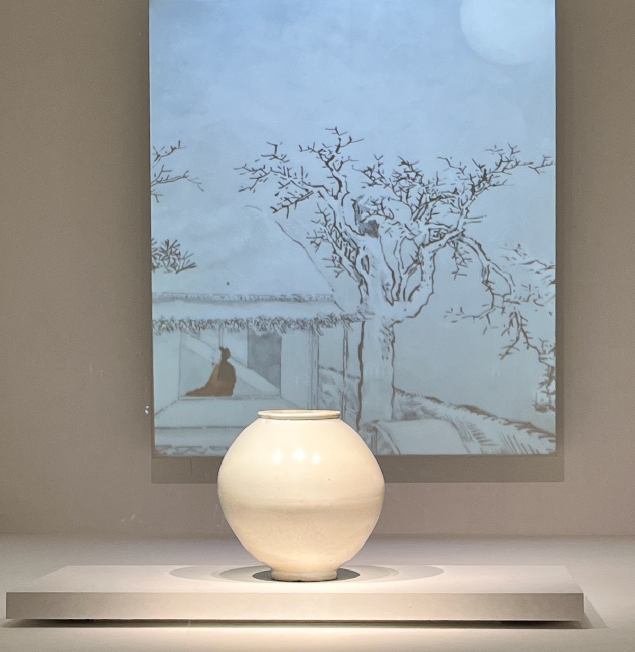 満月のように大きく白い壺「タルハンアリ」。雪が静かに降り積もり、満月の照らす光景がビデオで映し出されて、白磁の壺の美しさが目に焼きつくようでした。(少し長いですがビデオをゆっくり見てください。)