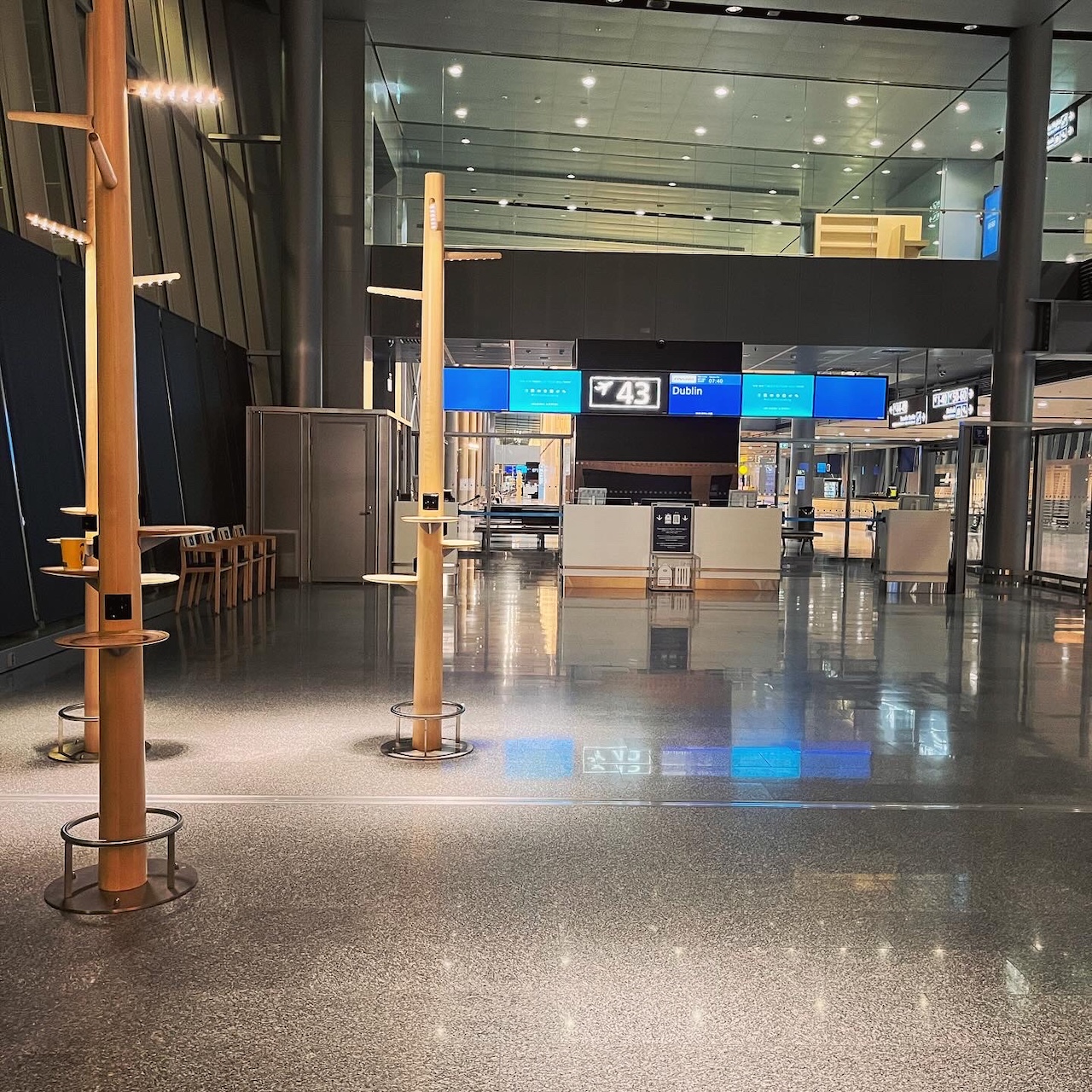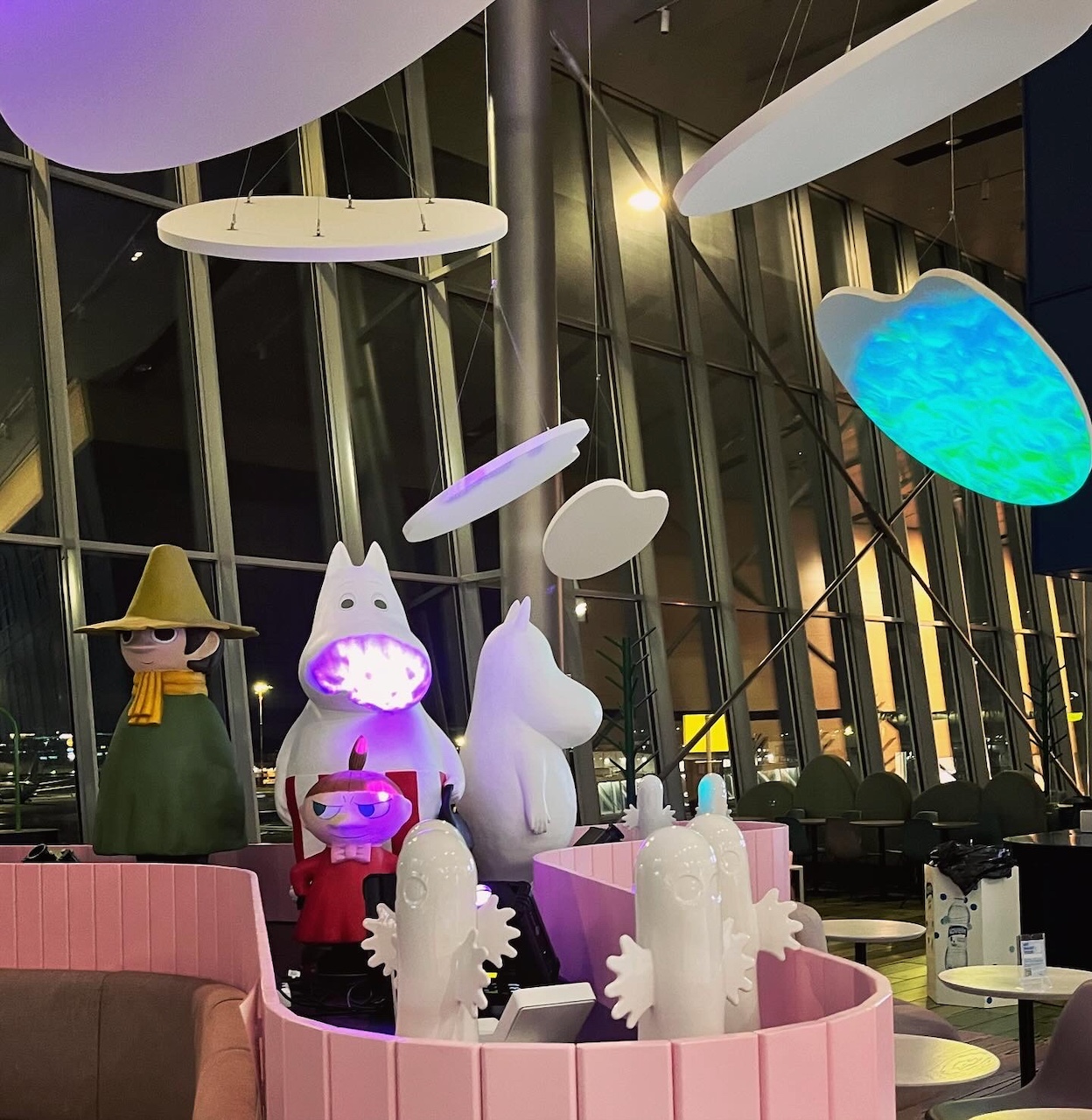 往路と同じくほぼ24時間、北極経由で着いた朝3時半のがらーーんとしたヘルシンキ空港のムーミンファミリー眠そう。地面積雪で凍っていました。