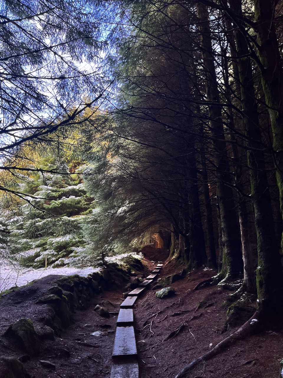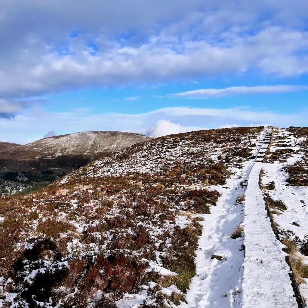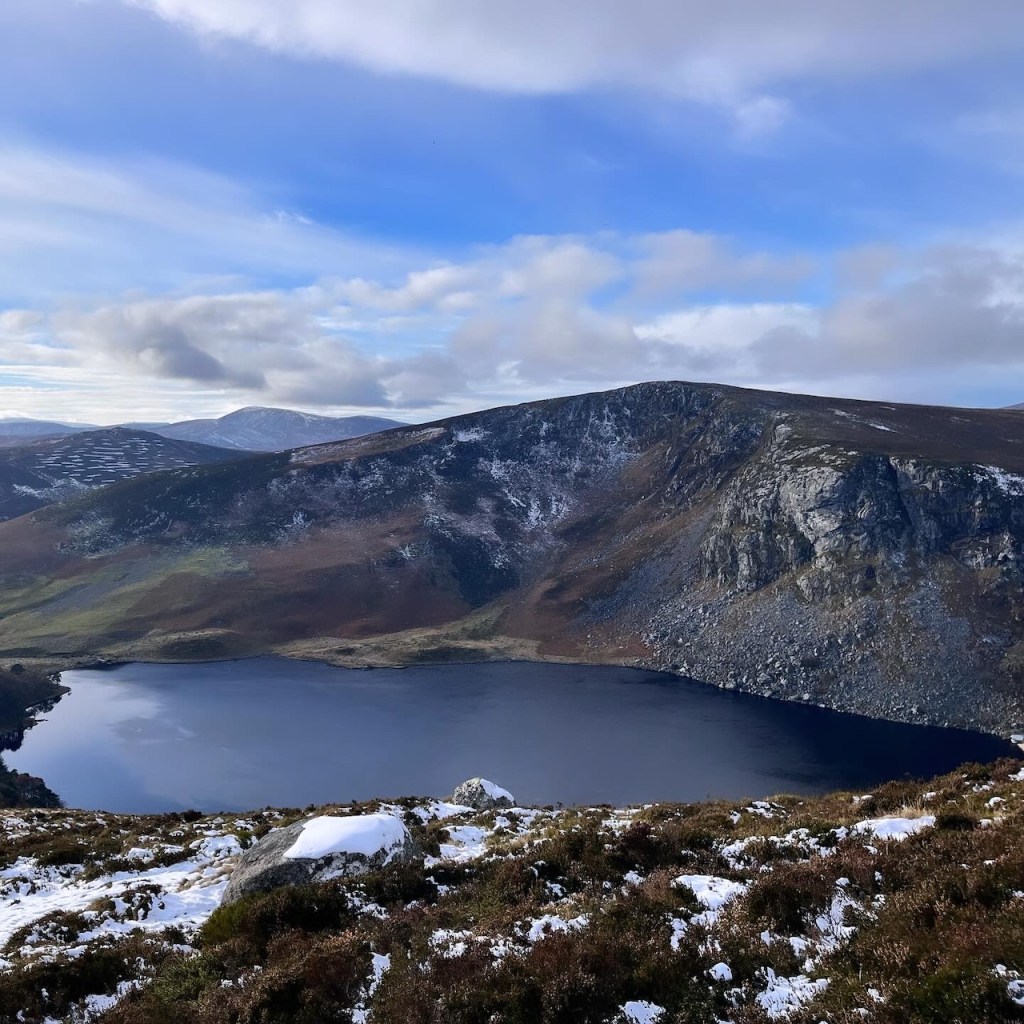 2023.12.02. Zoomミーティングの後、良い天気だったので山の上のほうのウイックロウウェイを少しだけ歩いてきました。Lough Tayを見晴らすお気に入りのスポットは久しぶり。白い雪が薄く積もっていますが凍ってはおらず風もなく気持ち良く歩きました。