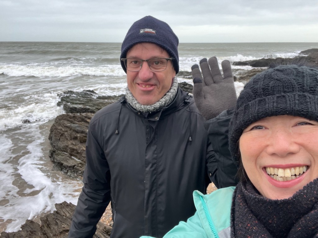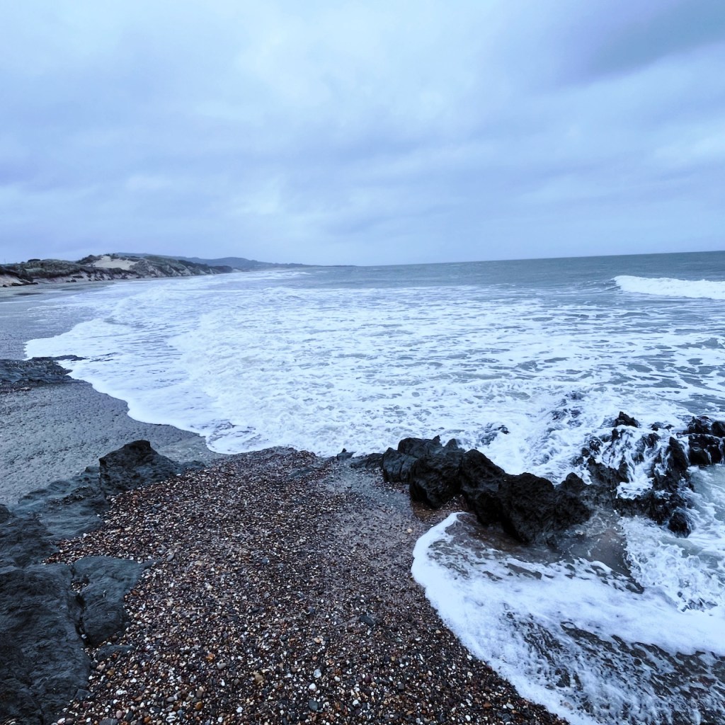 2024.01.27. トーマスが「海が見たい」と言うので、ブリッタスベイの砂浜散歩。寒い風が吹いていましたが、冬の海の新鮮な空気を胸いっぱい吸い込むのは気持ちが良い。