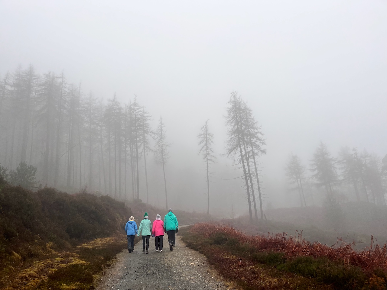 Friday 9 Feb 2024. Misty morning walk on Derrybawn hill in Glendalough, 9.0 km elevation gain 358 m. Great being part of chatty group, as I’ ve been a bit sick last few days with sore throat. Managed all right walking up hill with my friends. Beautiful misty landscapes.