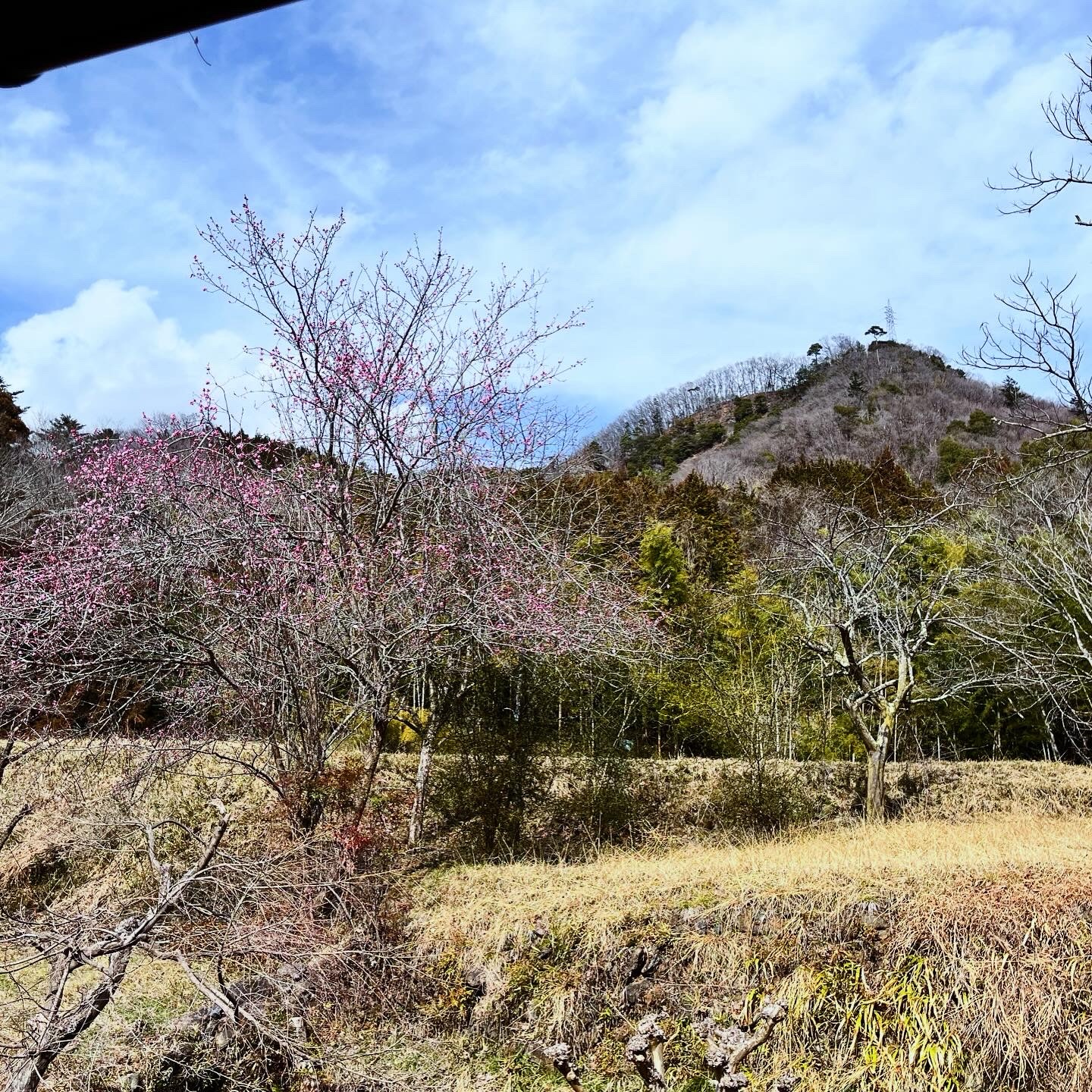 Tue 20 feb 2024. Iwadono Mt from my son’s window. Plum trees are flowering. Lovely breezy warm weather today, although in the evening it gets cold. Max 22 ℃