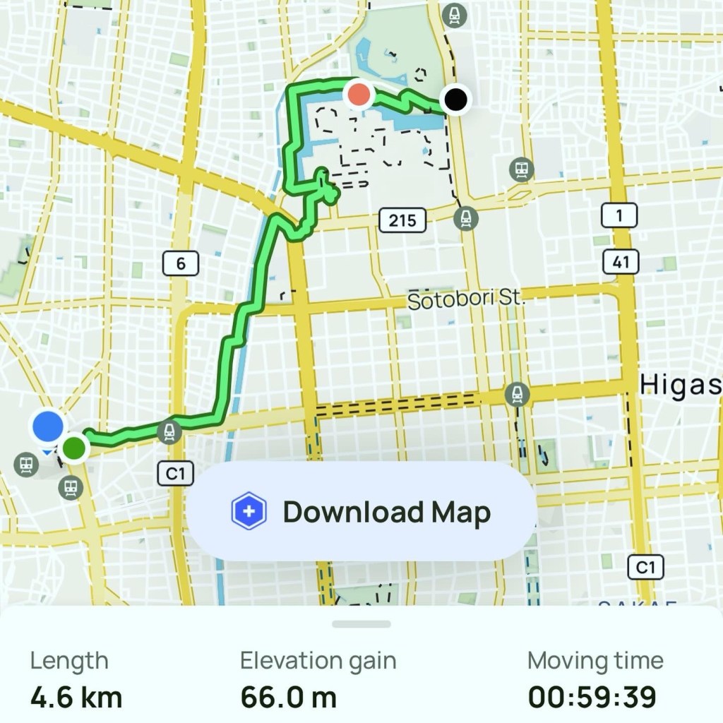 La veille au soir, on avait vraiment trop mangé dans ce restaurant de ‘Hitsu-Mabushi’ (je ne sais même pas s’il faut couper le mot de cette manière) et je me suis réveillée super tôt. Dommage je n’ai pas pu voir le soleil arriver (c’était de l’autre côté de la gratte ciel). Du coup je suis partie explorer le quartier à la marche et j’ai suivi le map sur mon ‘All Trails’ (très pratique!) pour aller voir le Château de Nagoya.