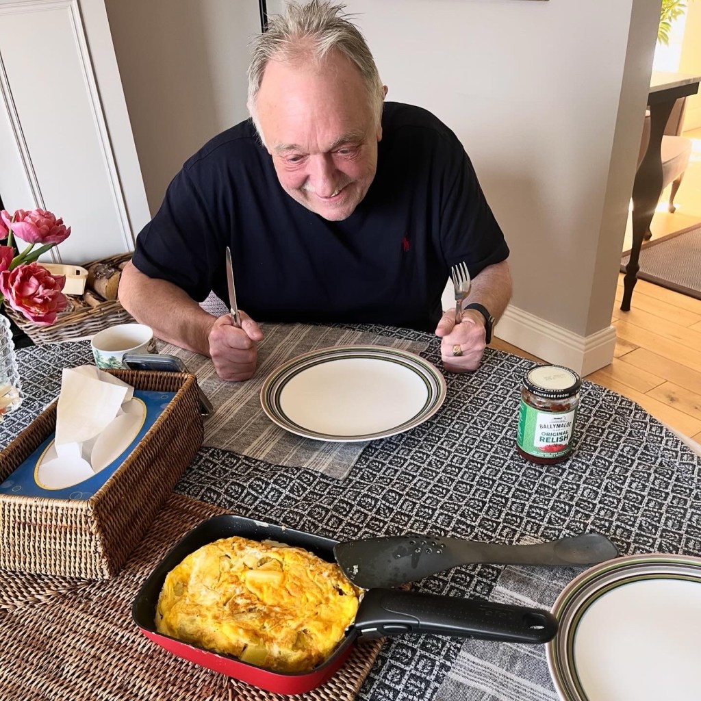 potato omelette for lunch and made Bernie so happy. My new omelette pan is great!