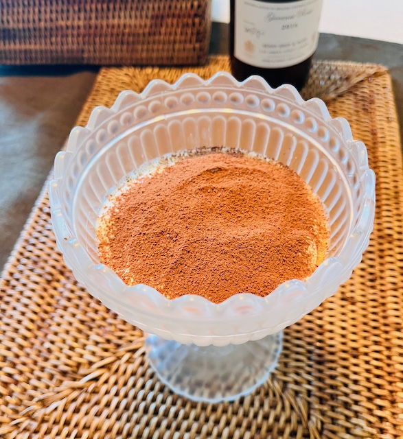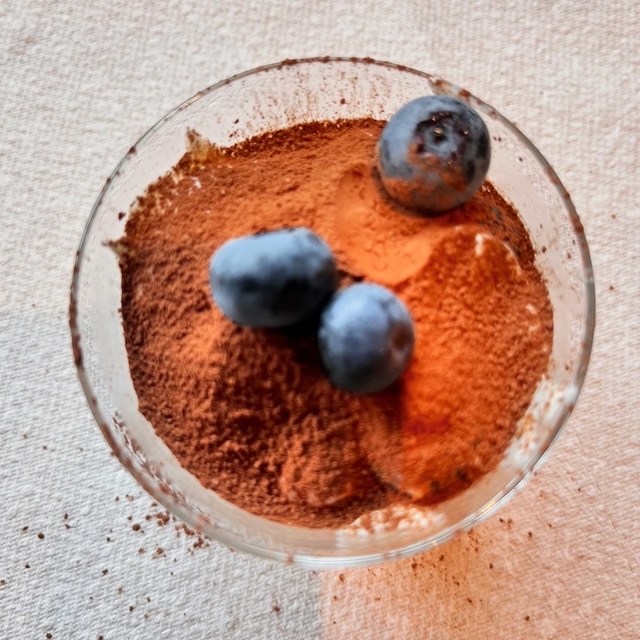 (表面にふりかけるカカオ粉は、食べる直前。下にクッキングシートを敷いて。)