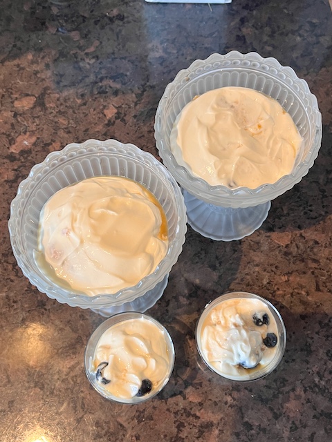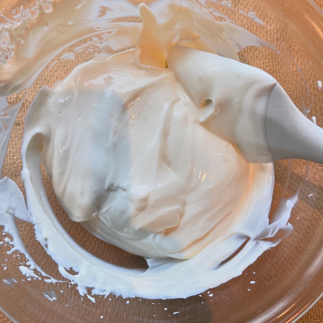 通常は卵の黄身とマスカルポーネと砂糖を使うところ、シンプルにヨーグルト+はちみつ(レシピは砂糖だったけれどもsachanははちみつで代用できて嬉しい)、そこへしっかり泡立てたクリームを合わせる(sachanはしっかりめのクリームを買っていたので、あまり泡立てず)。
