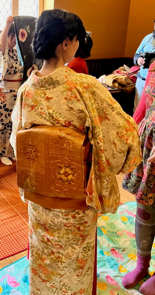 大好きなお友達といっしょで 長蛇の列の人たちにひたすら浴衣を着せてあげて写真撮ったら脱がせるってだけなんですが、まあーーおばあさんやおばちゃんたちも、お母さんたちも、お父さんも、若い人たちも、子どもさん連れの家族も、高校生ぐらいのボーイズも、アイルランド人だけでなくマレーシア人やポーランド人や、いろいろの皆さんがとっても喜んでくださって楽しさ炸裂。